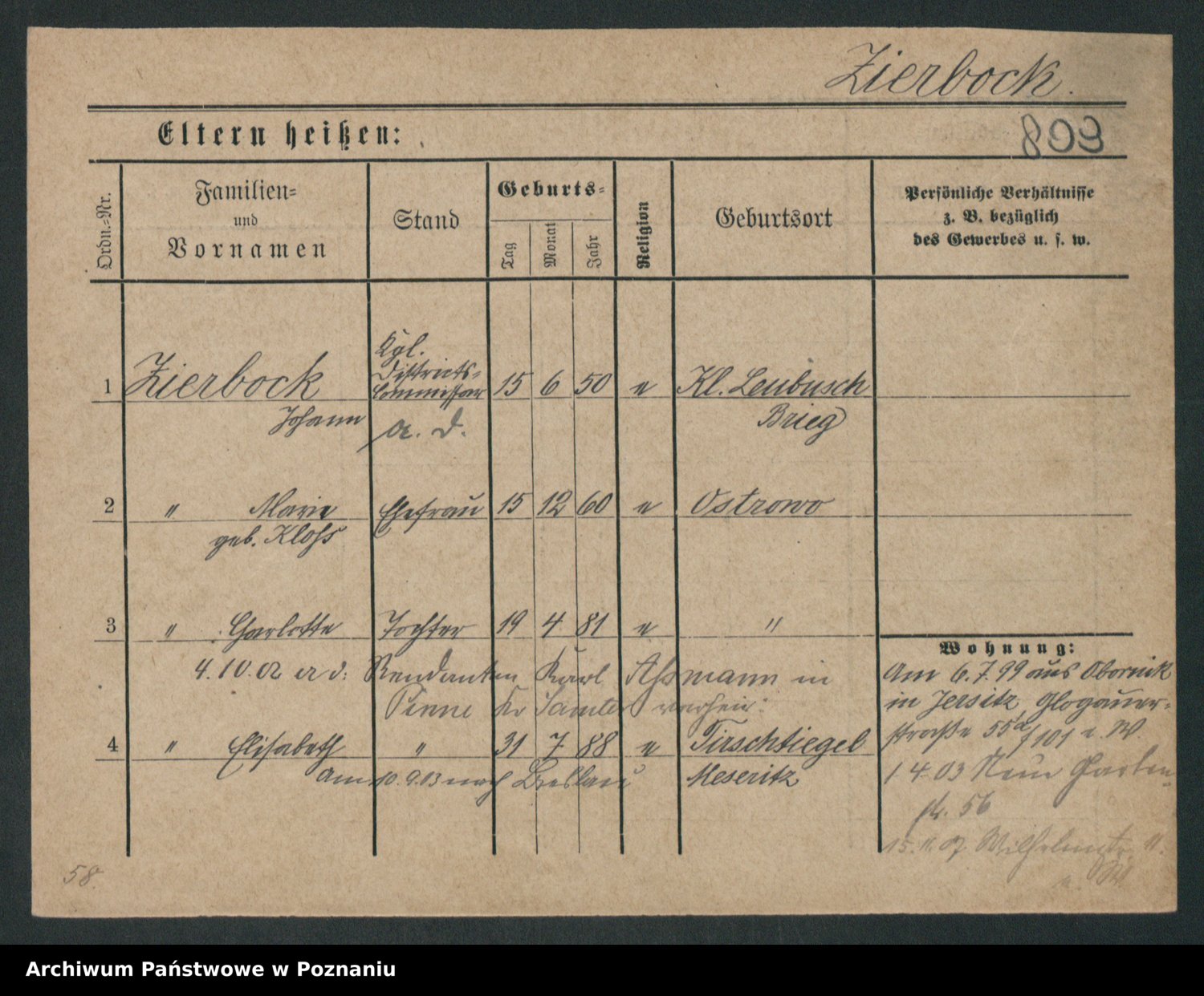 Zieske z.d. Lück, Johanna Auguste