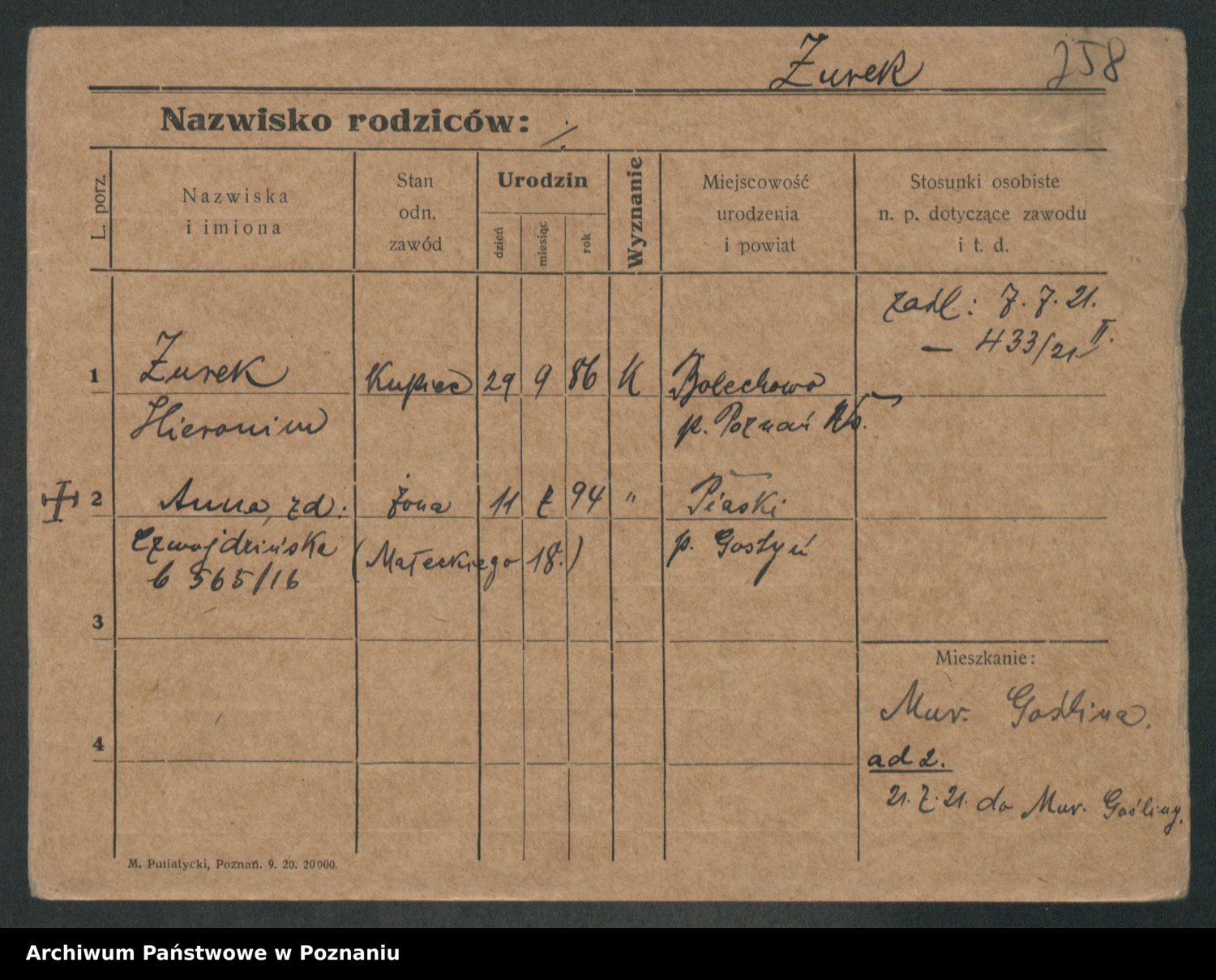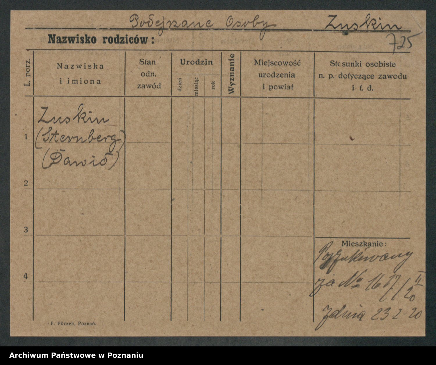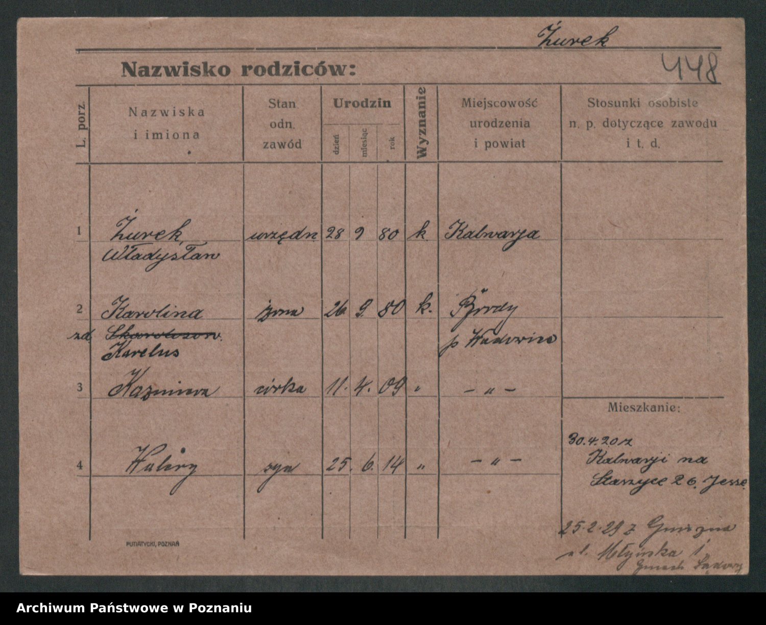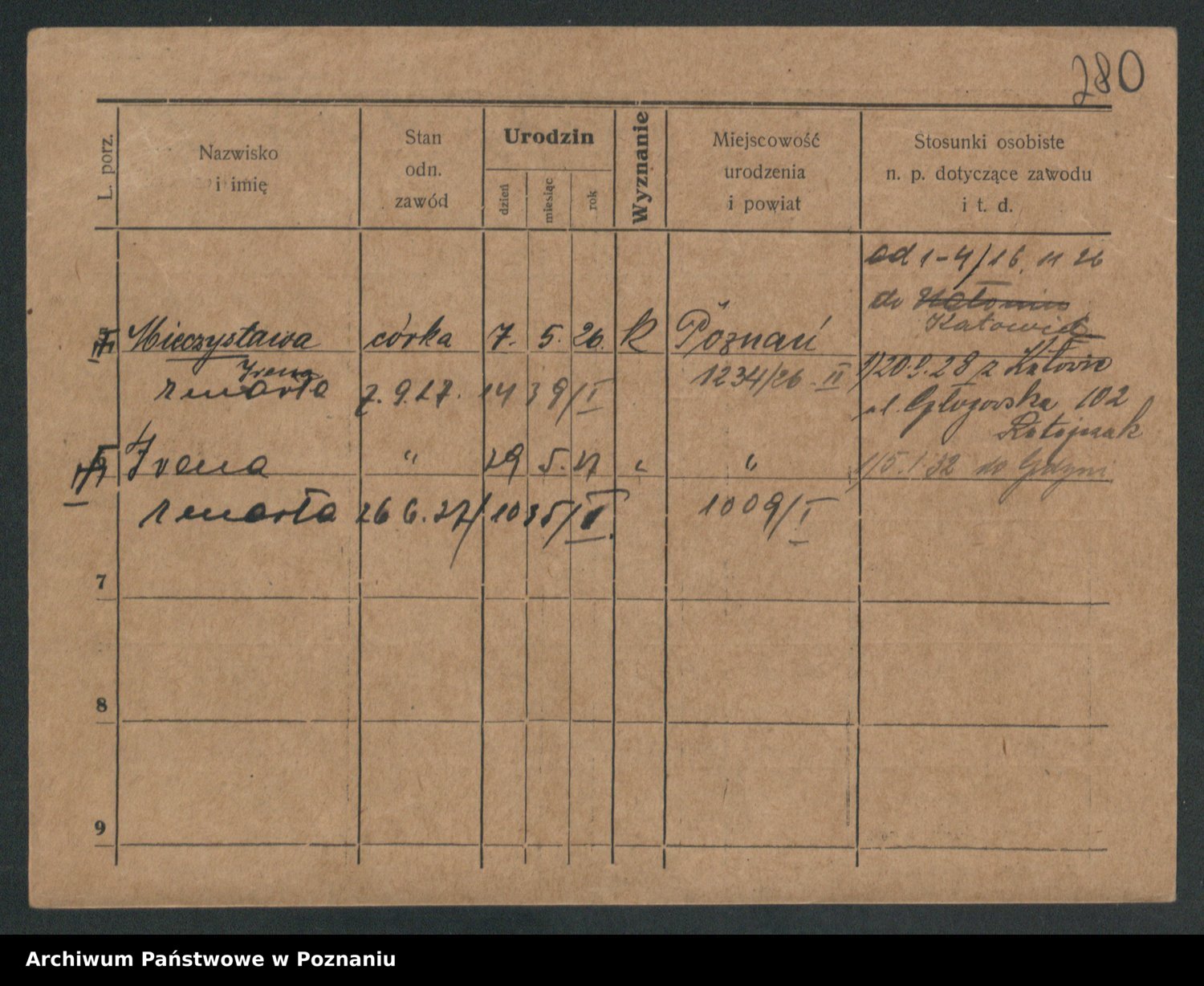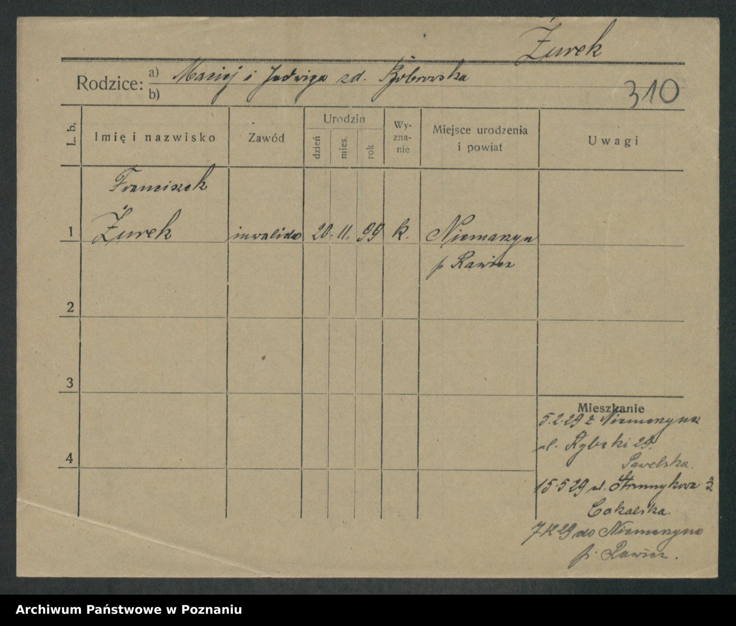 Podgląd karty osobowej dostępny jest po kliknięciu na nazwisko lub ikonkę karty. Można dokonywać powiększenia (ikony na górze) lub przechodzić między kolejnymi skanami (strzałki po bokach).