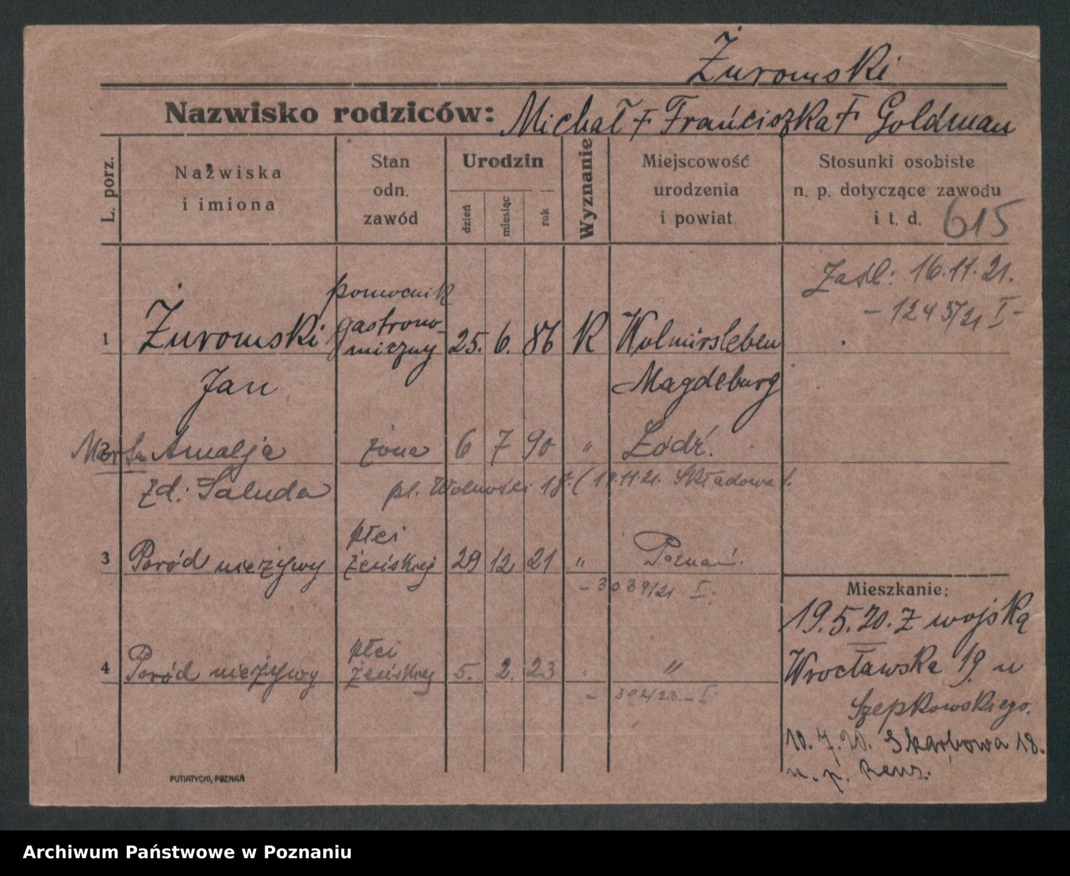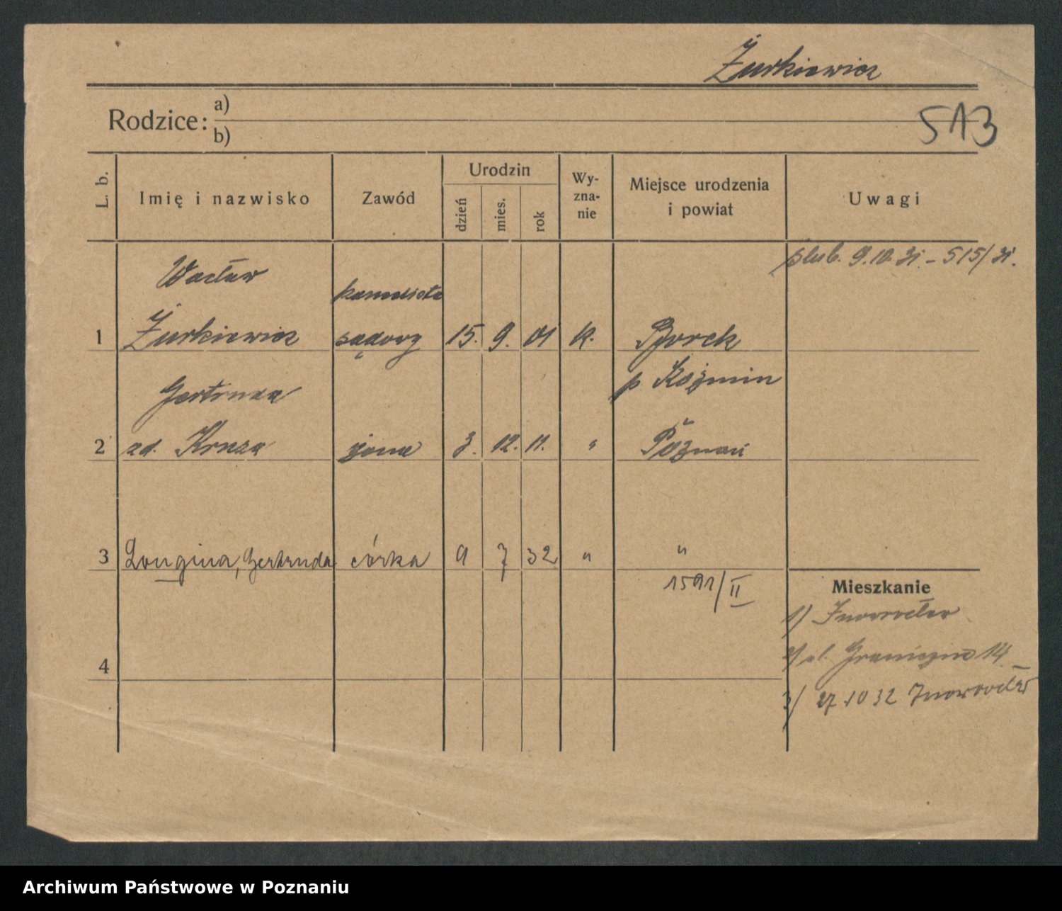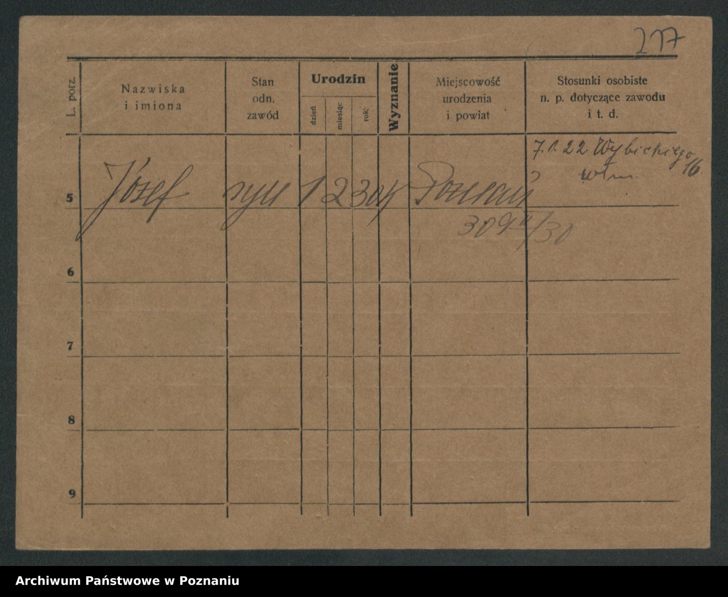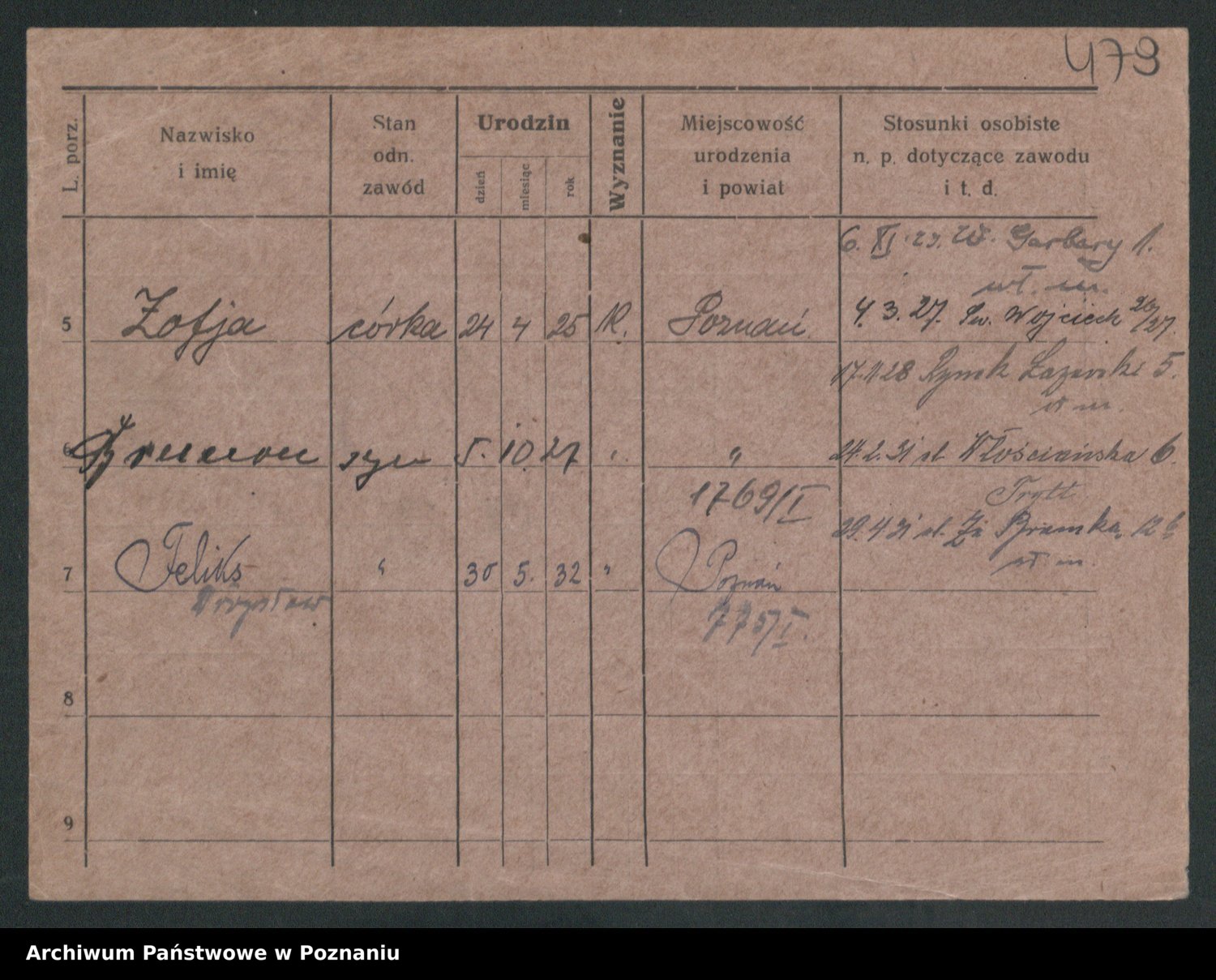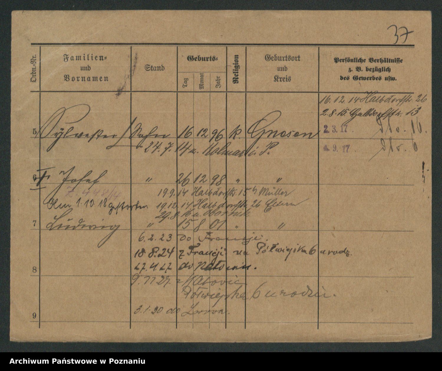 Podgląd karty osobowej dostępny jest po kliknięciu na nazwisko lub ikonkę karty. Można dokonywać powiększenia (ikony na górze) lub przechodzić między kolejnymi skanami (strzałki po bokach).