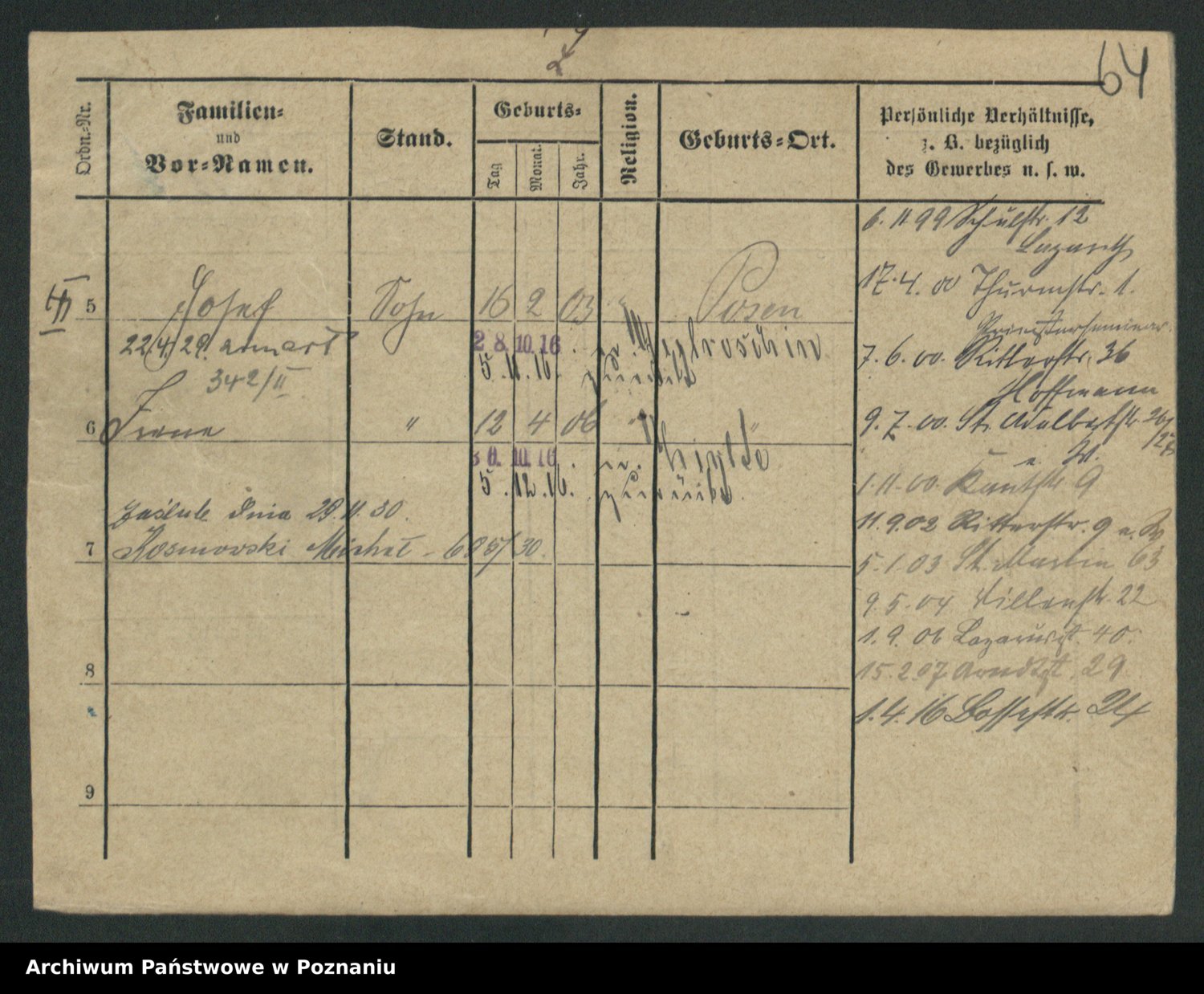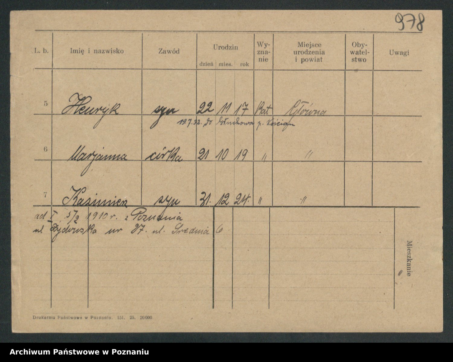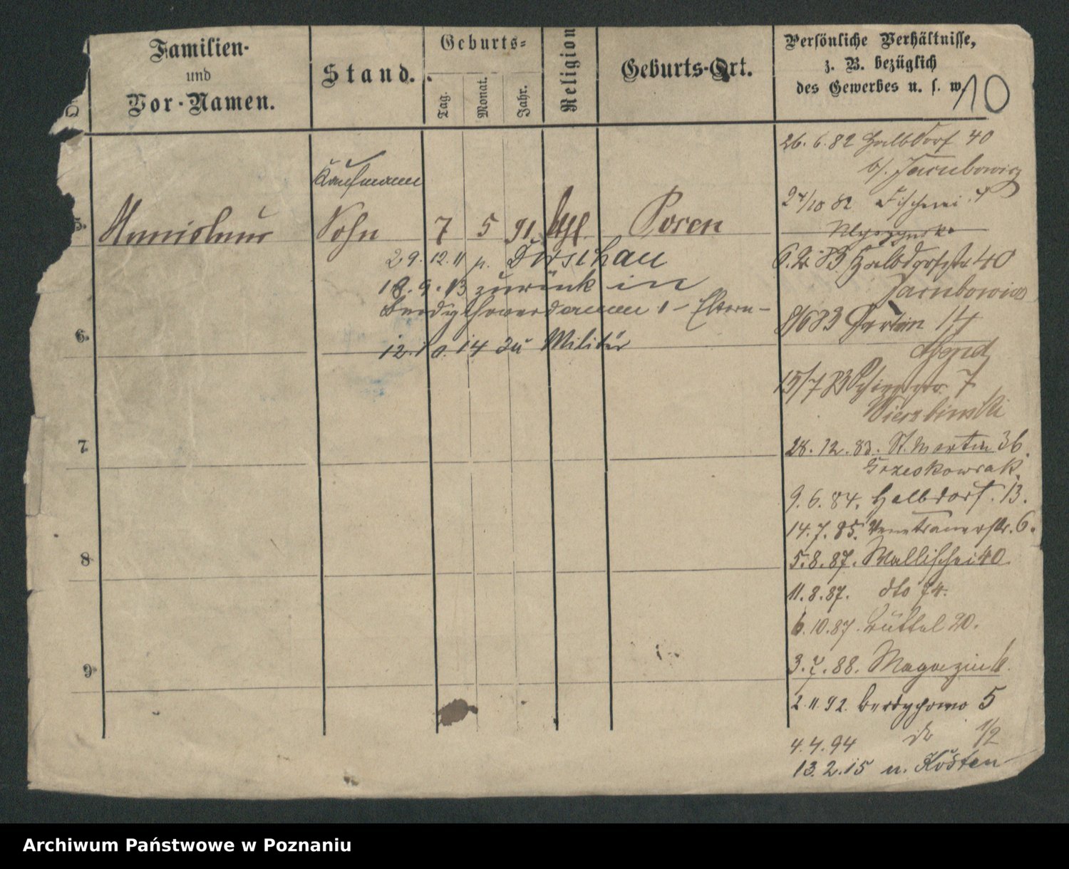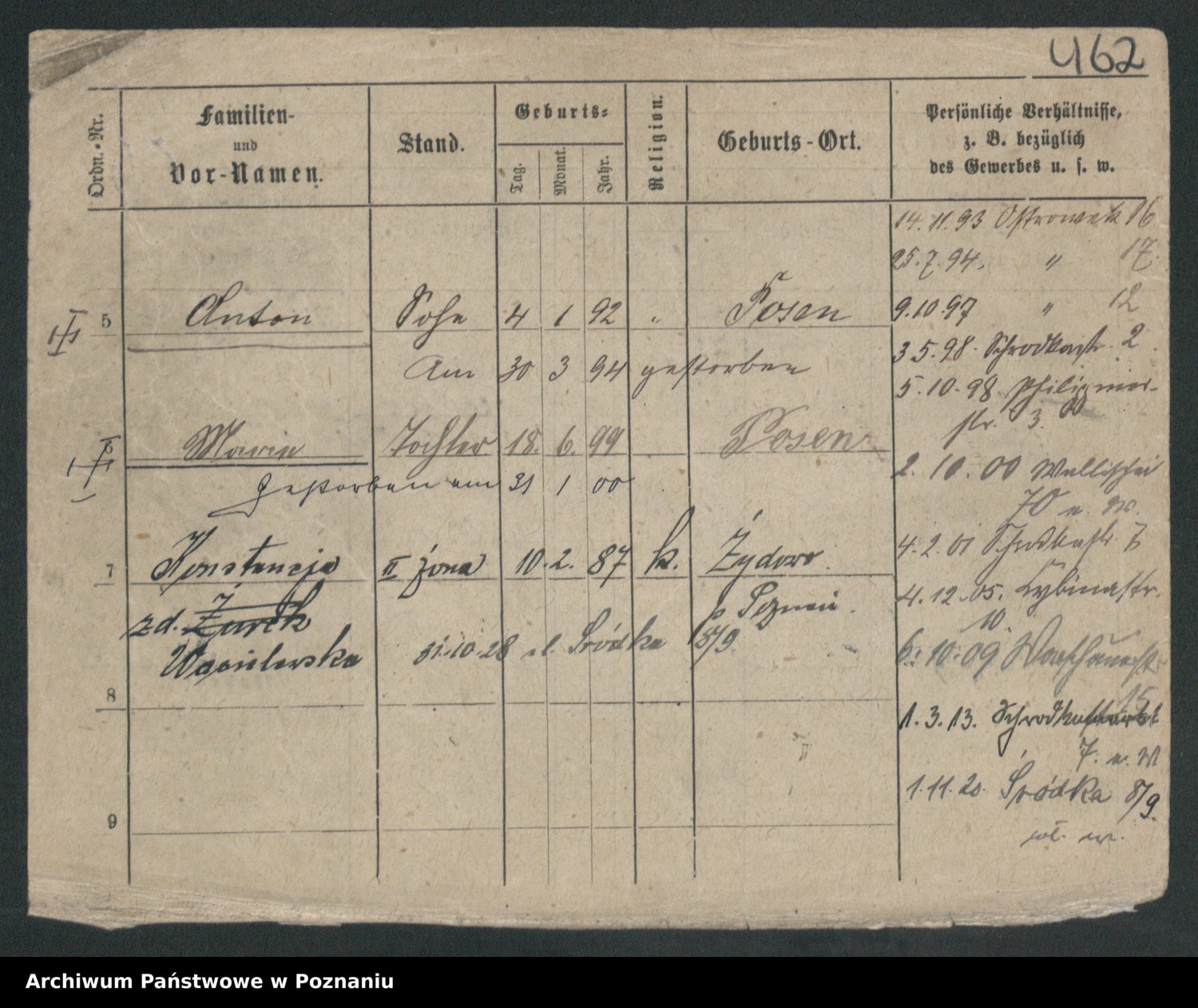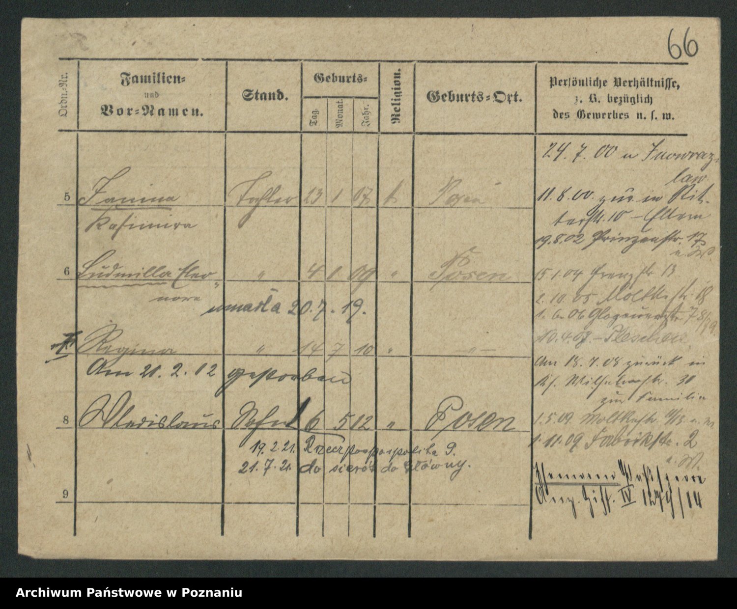 Podgląd karty osobowej dostępny jest po kliknięciu na nazwisko lub ikonkę karty. Można dokonywać powiększenia (ikony na górze) lub przechodzić między kolejnymi skanami (strzałki po bokach).