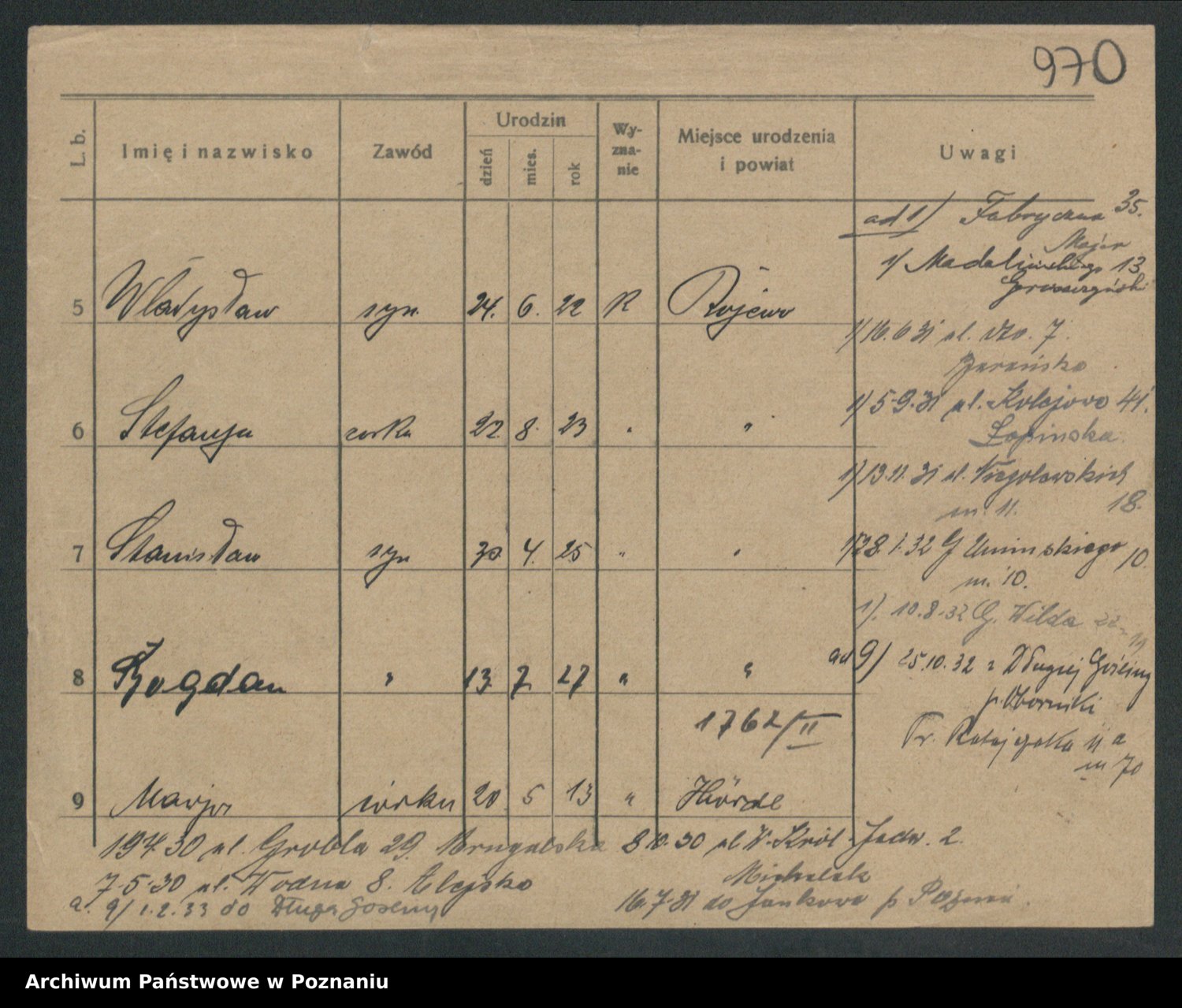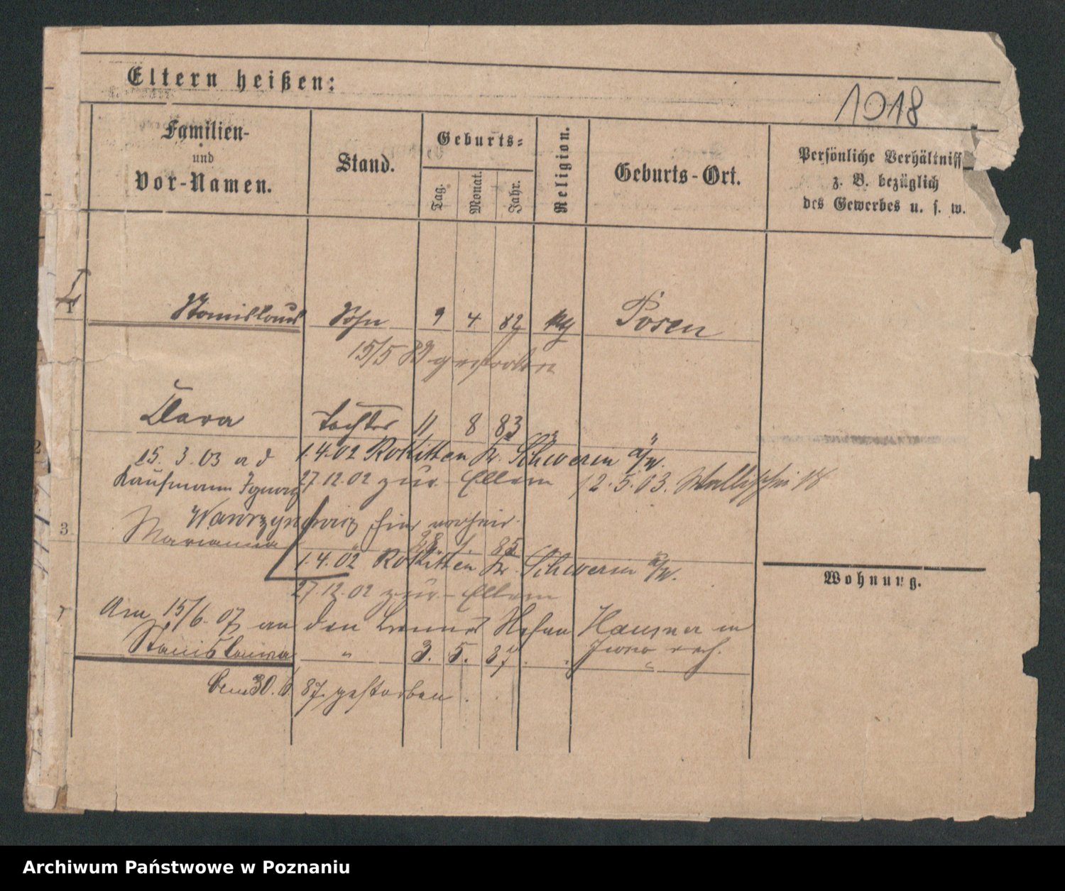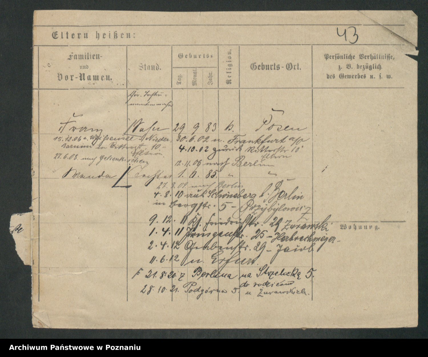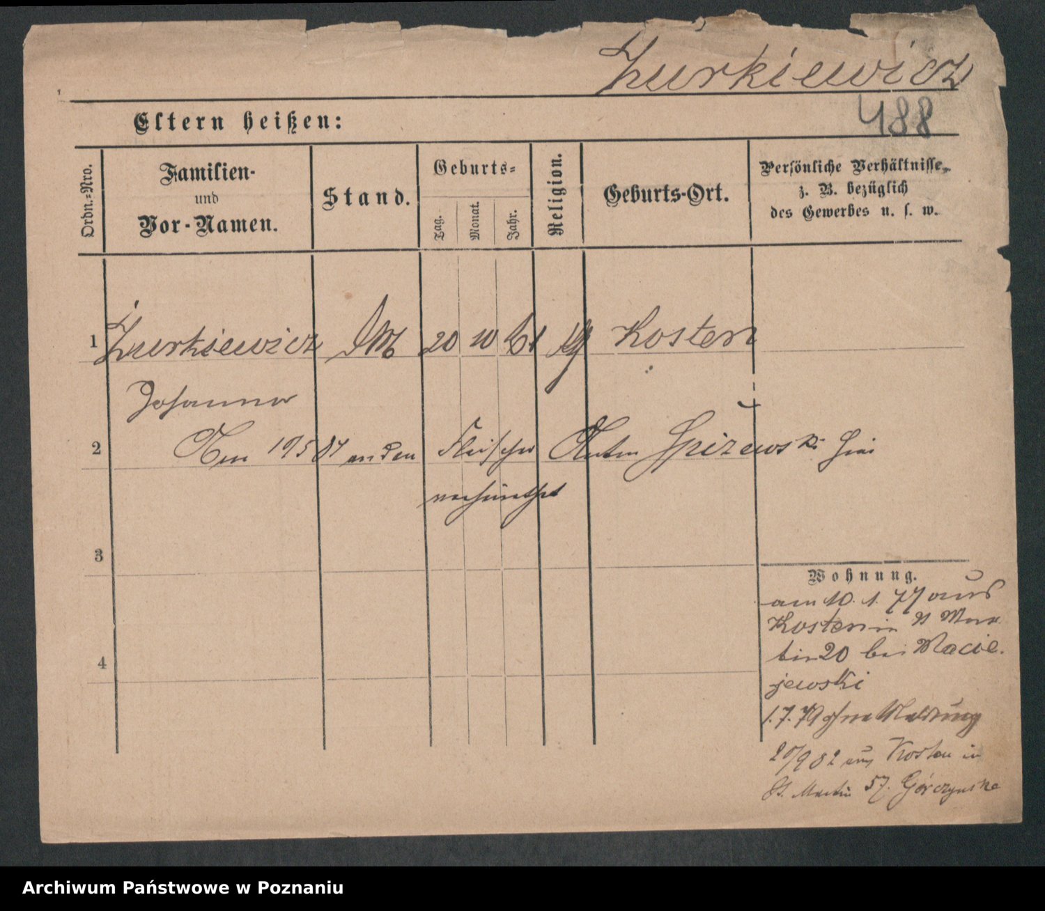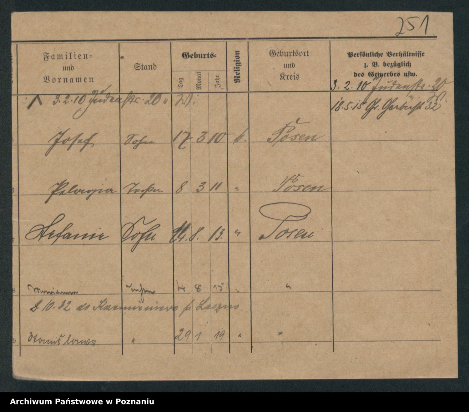 Podgląd karty osobowej dostępny jest po kliknięciu na nazwisko lub ikonkę karty. Można dokonywać powiększenia (ikony na górze) lub przechodzić między kolejnymi skanami (strzałki po bokach).