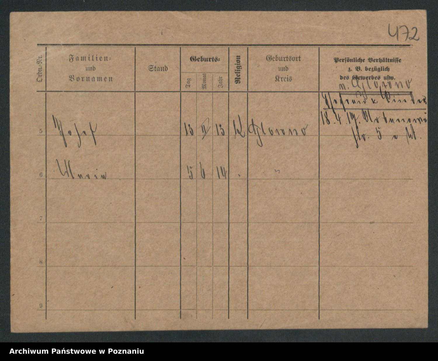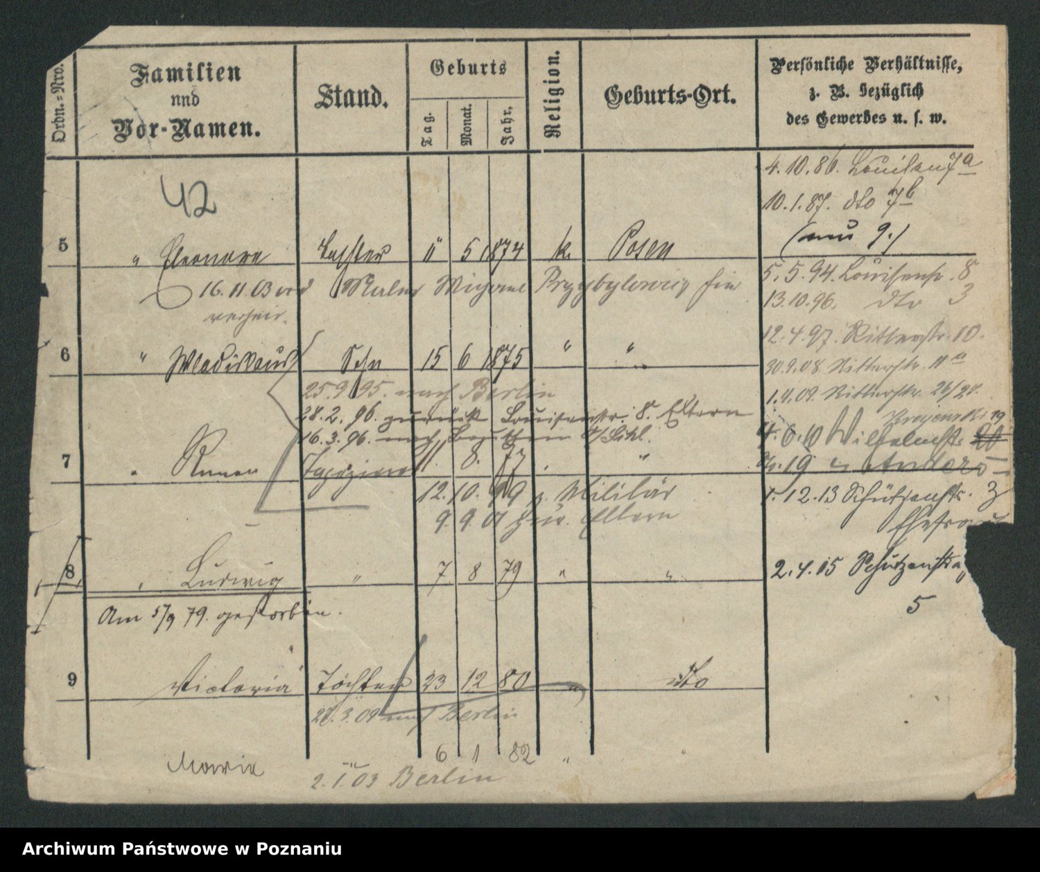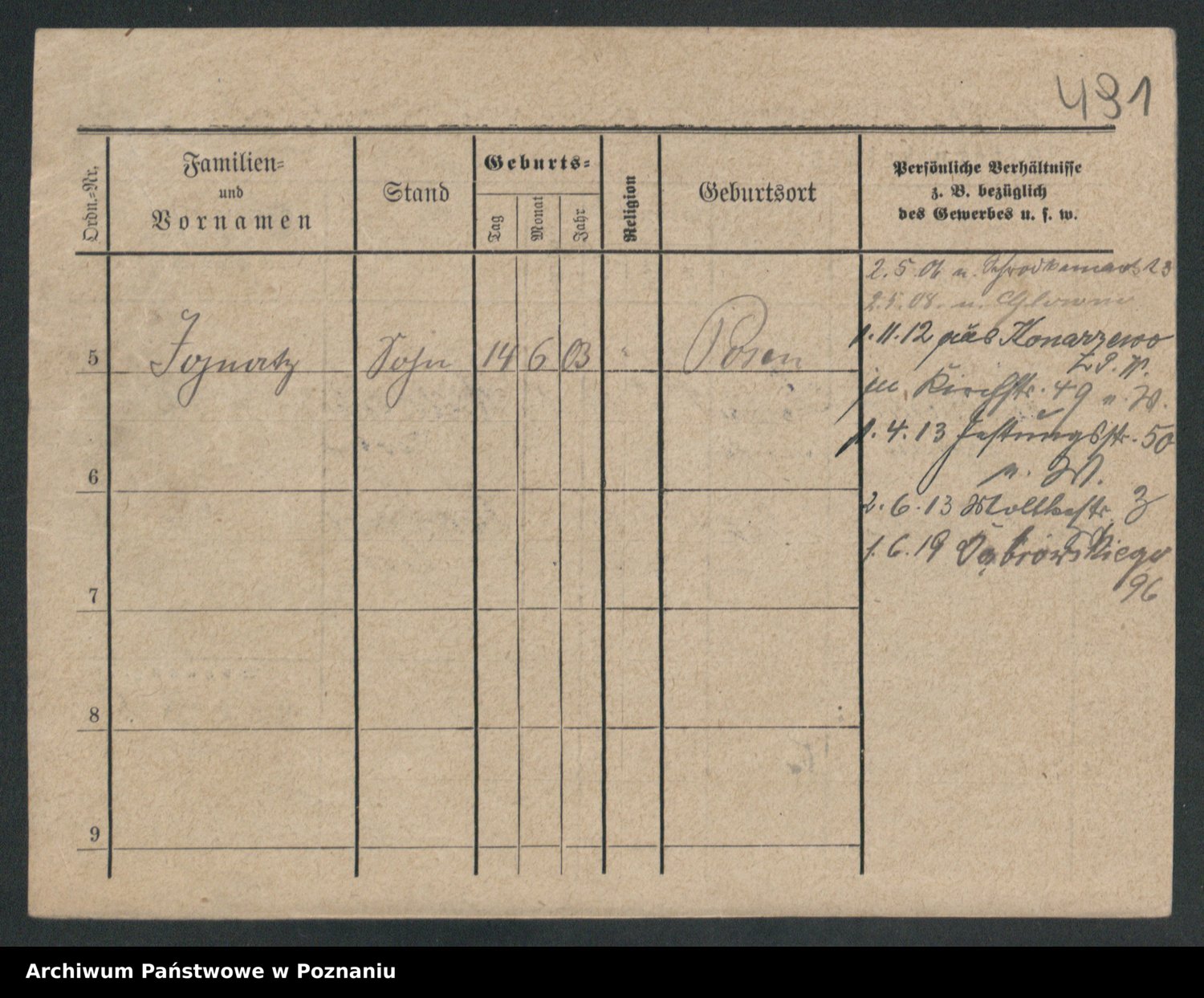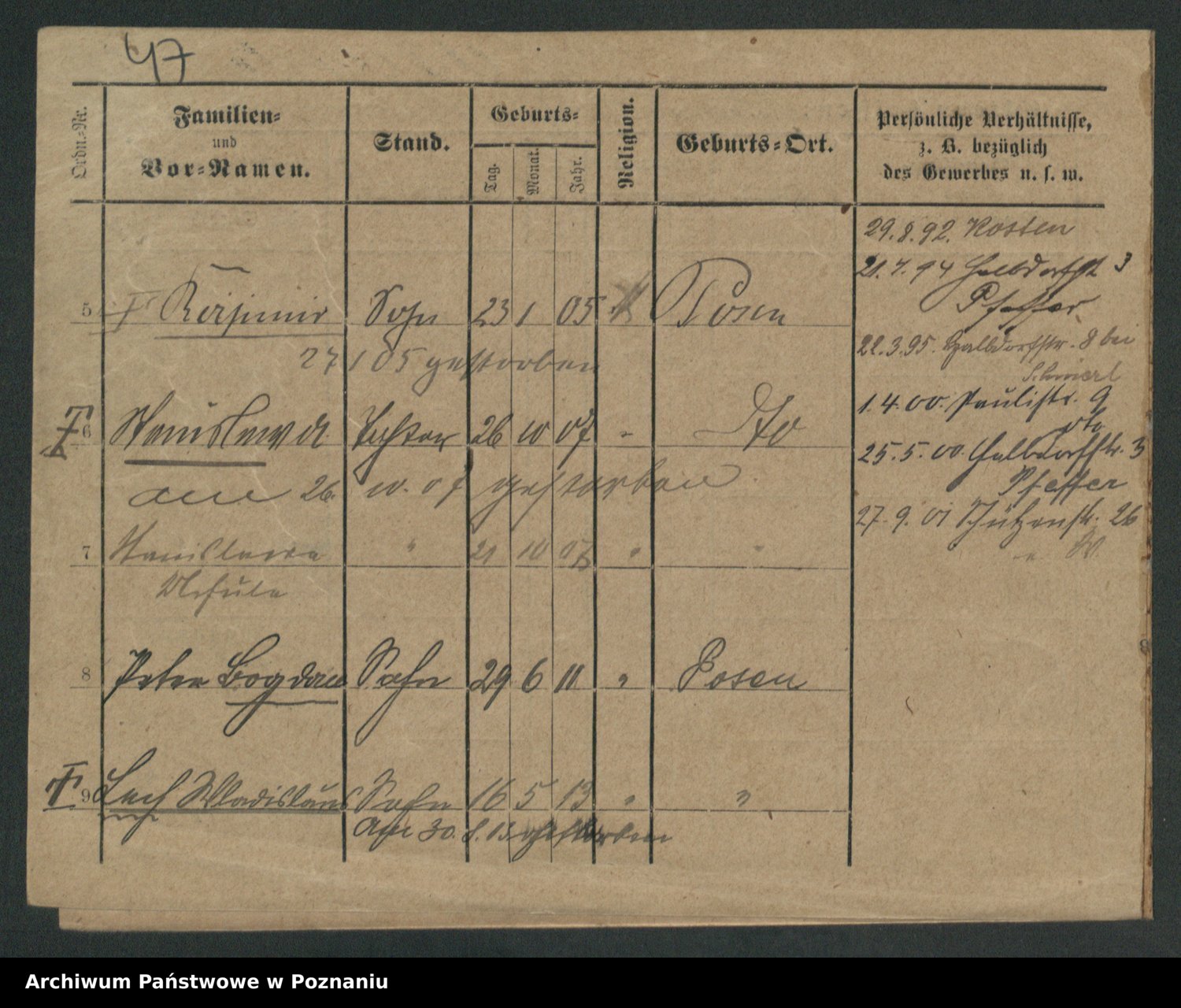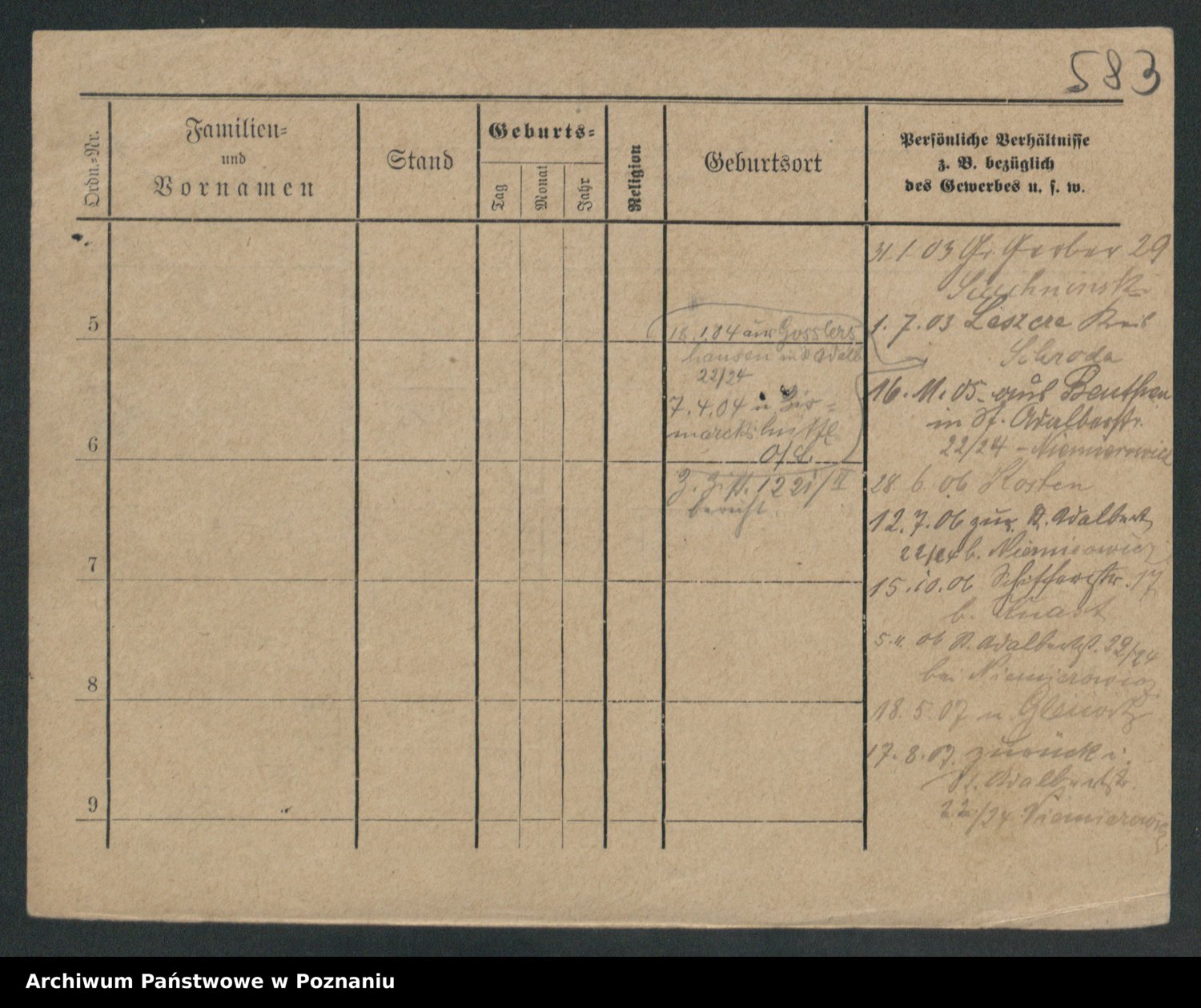 Podgląd karty osobowej dostępny jest po kliknięciu na nazwisko lub ikonkę karty. Można dokonywać powiększenia (ikony na górze) lub przechodzić między kolejnymi skanami (strzałki po bokach).