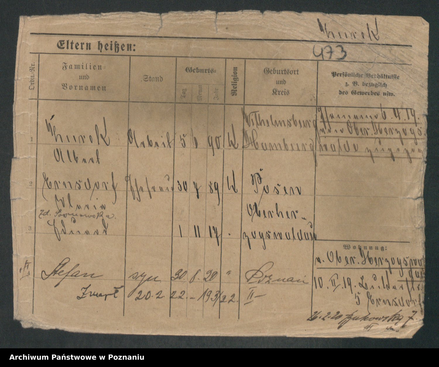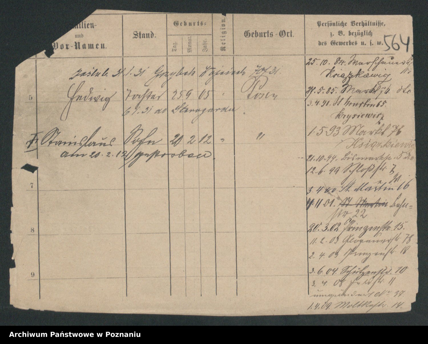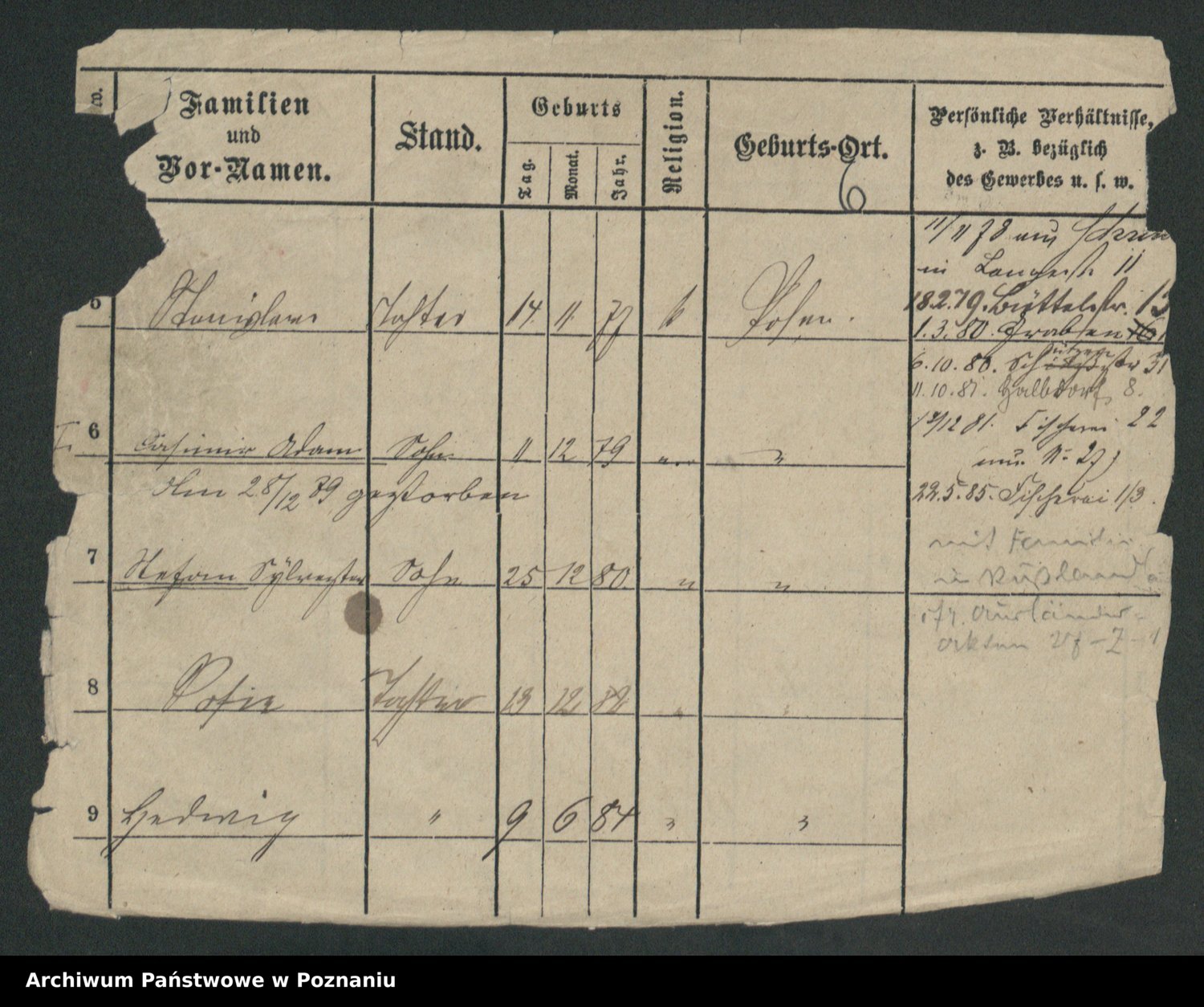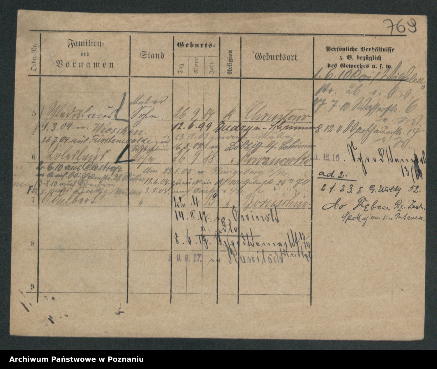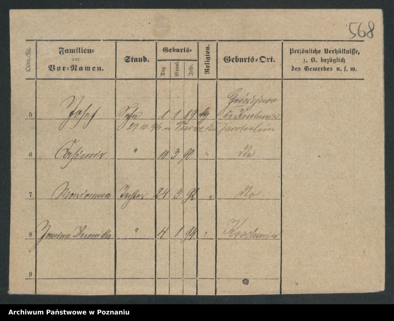 Podgląd karty osobowej dostępny jest po kliknięciu na nazwisko lub ikonkę karty. Można dokonywać powiększenia (ikony na górze) lub przechodzić między kolejnymi skanami (strzałki po bokach).