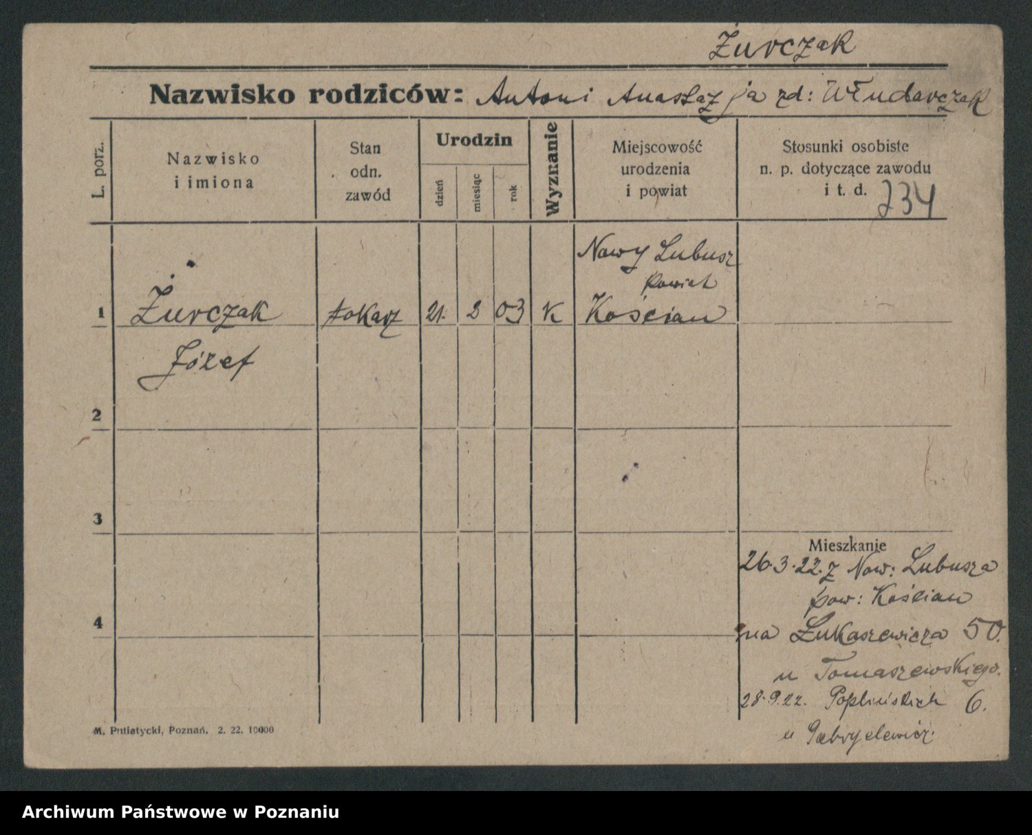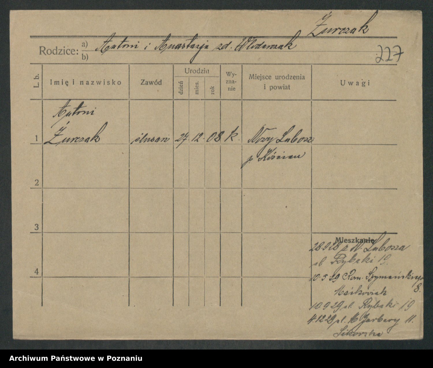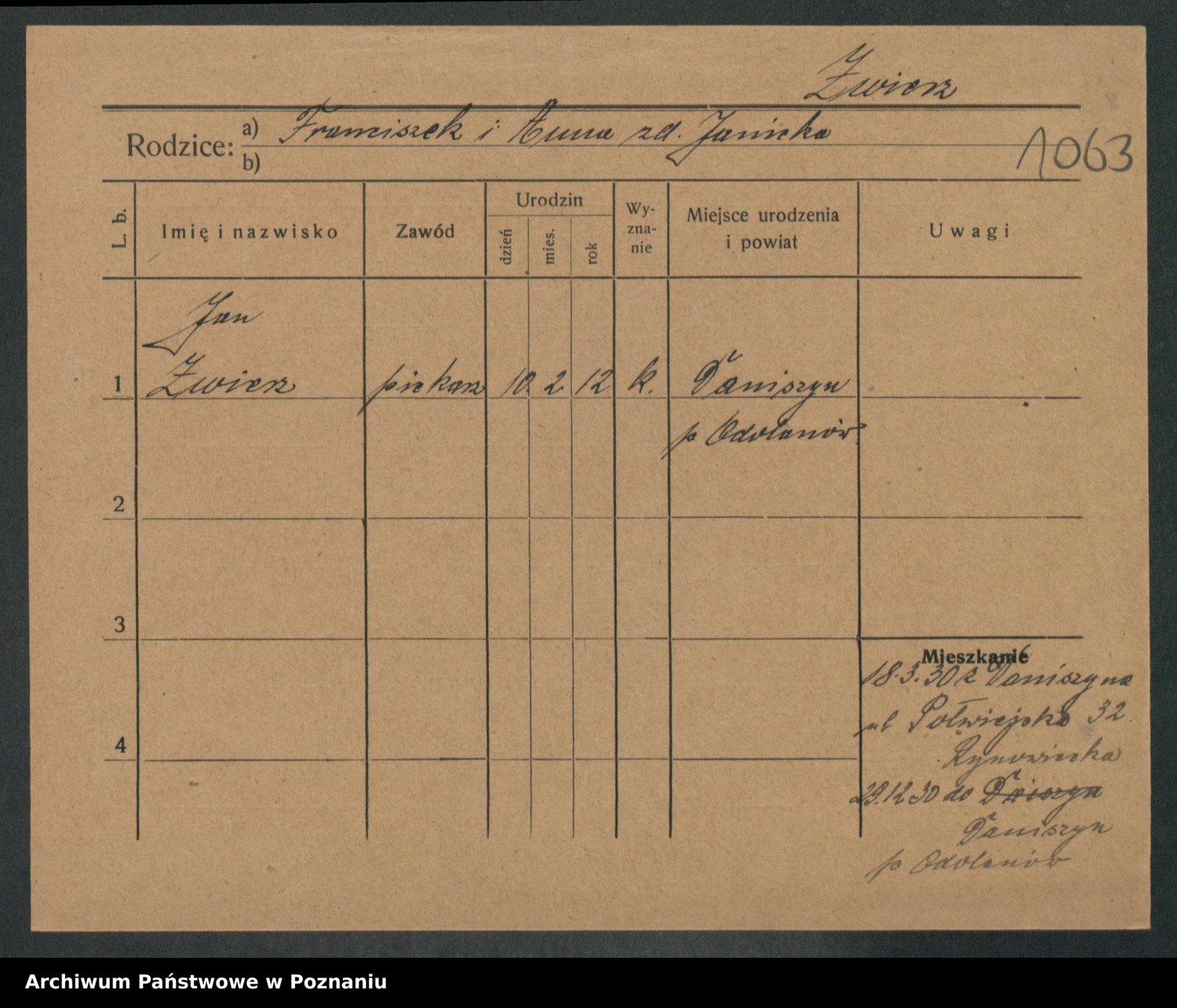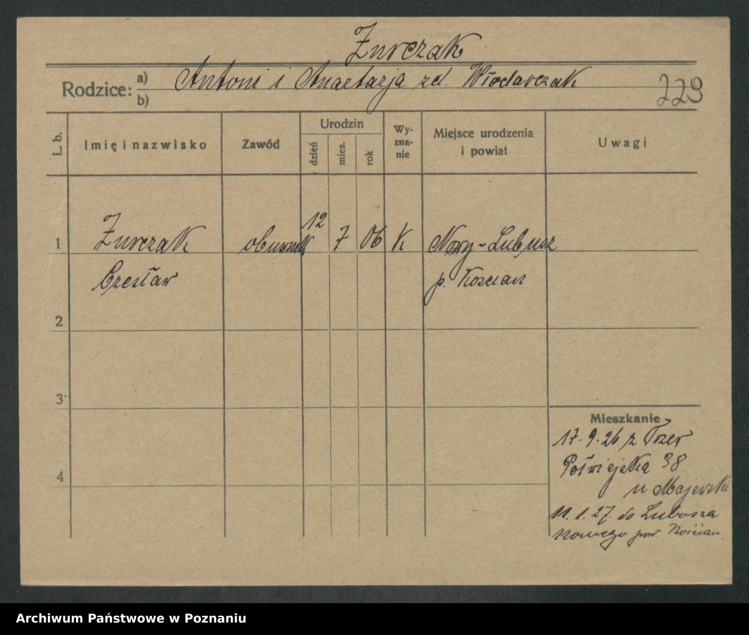 Zwierzlewski z.d. Tomczak, Antonie