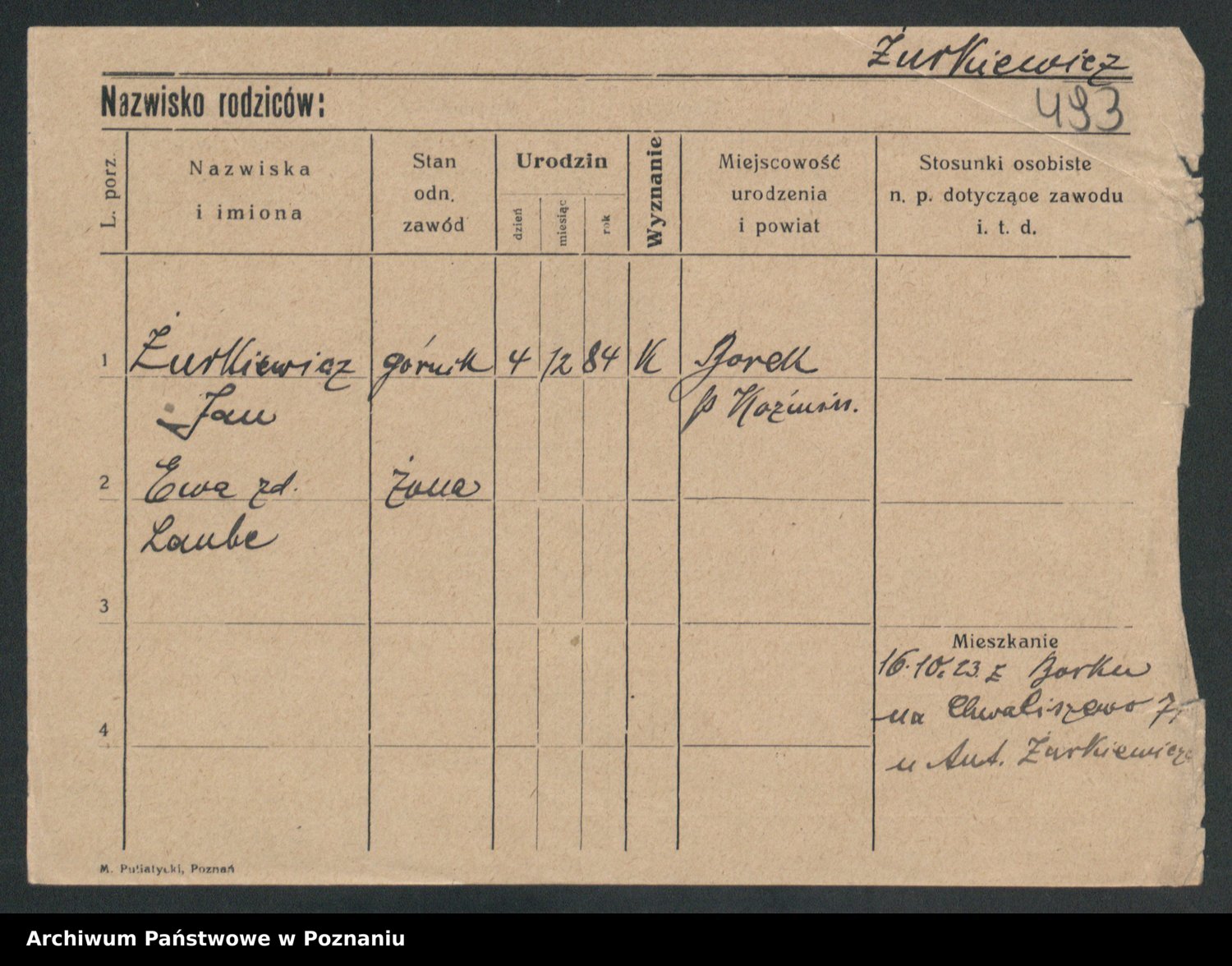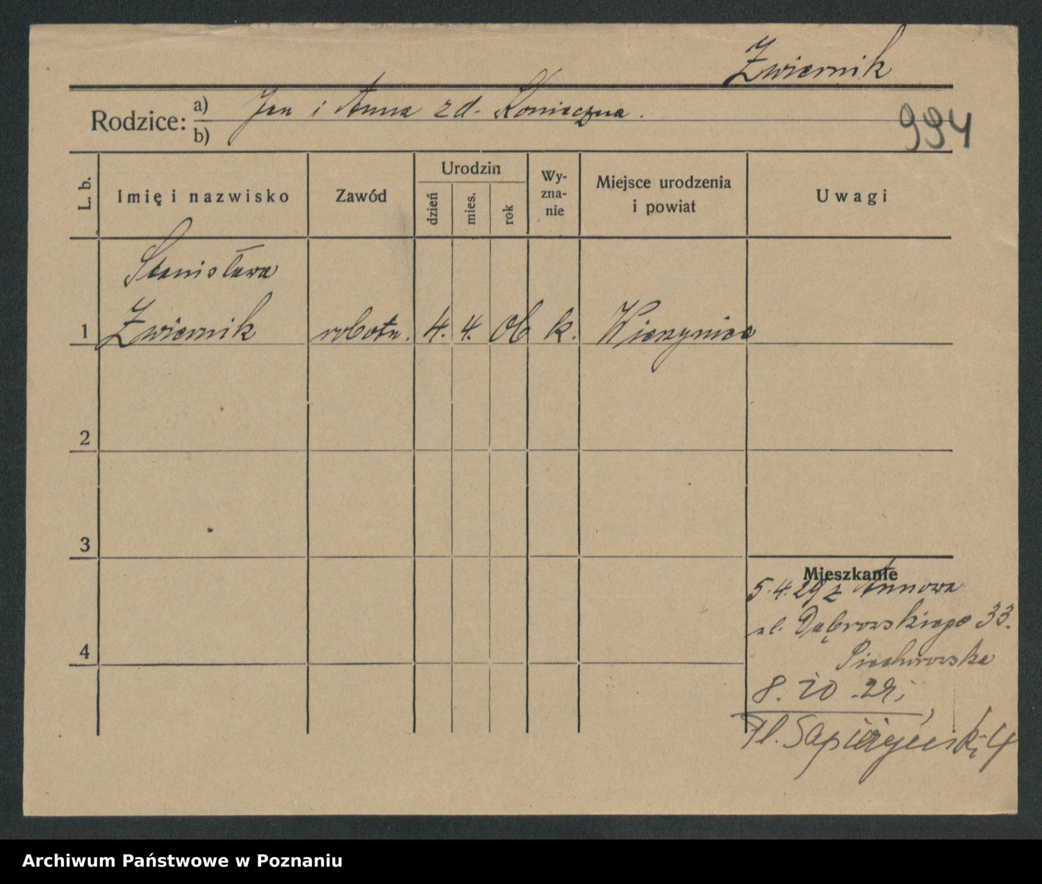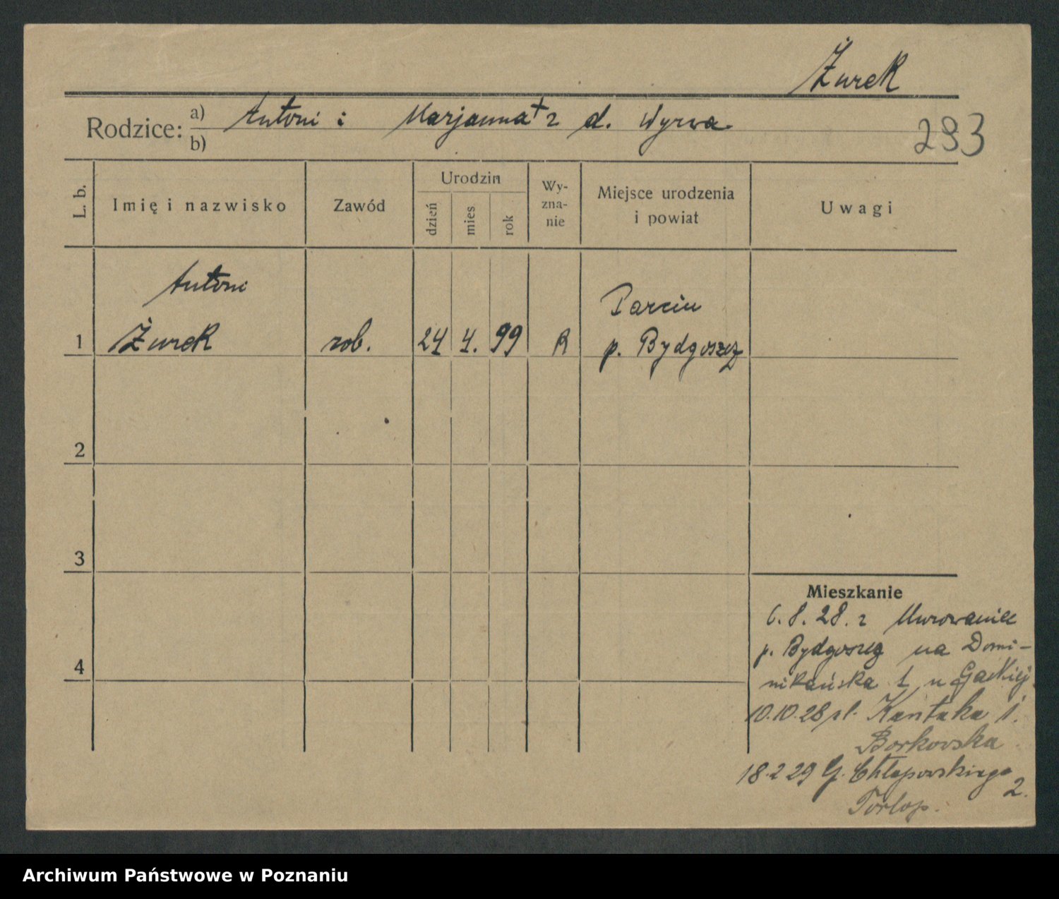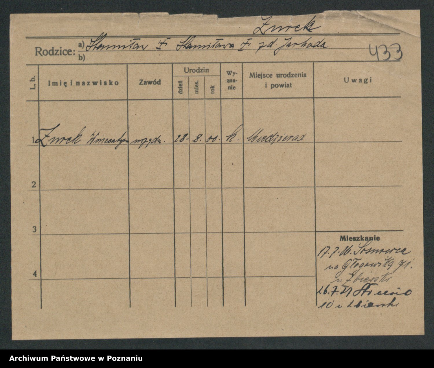 Zwierzlewski z.d. Tomczak, Antonie
