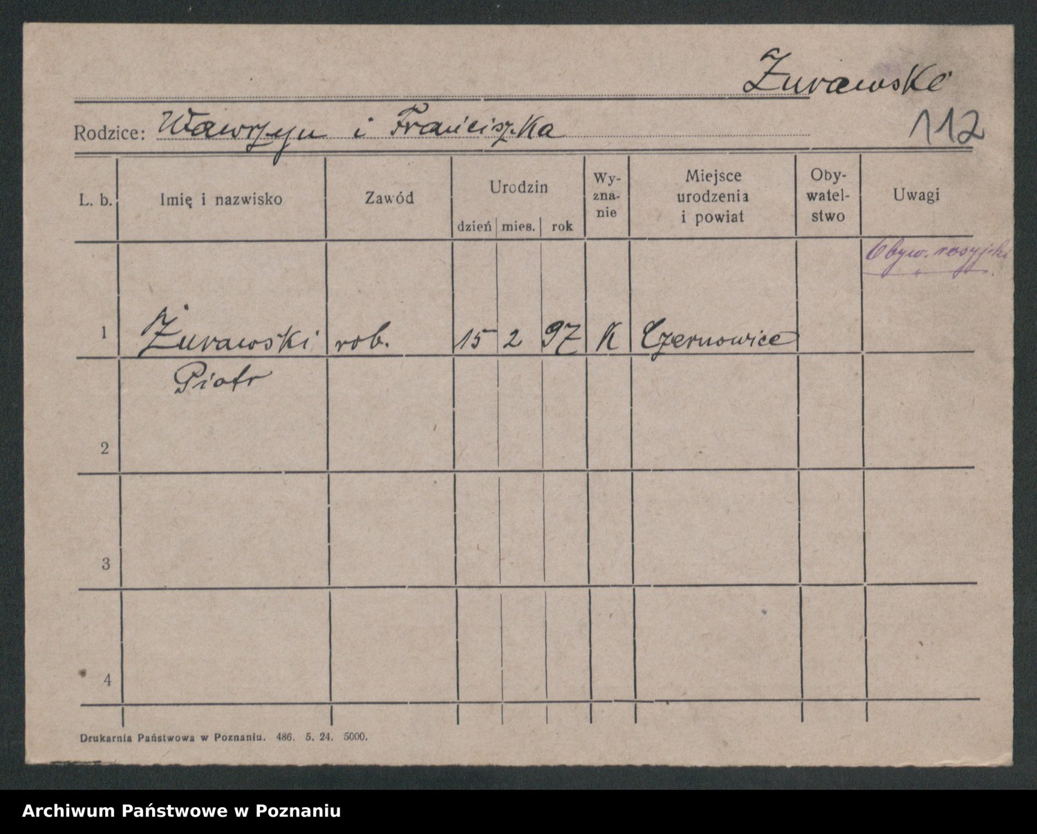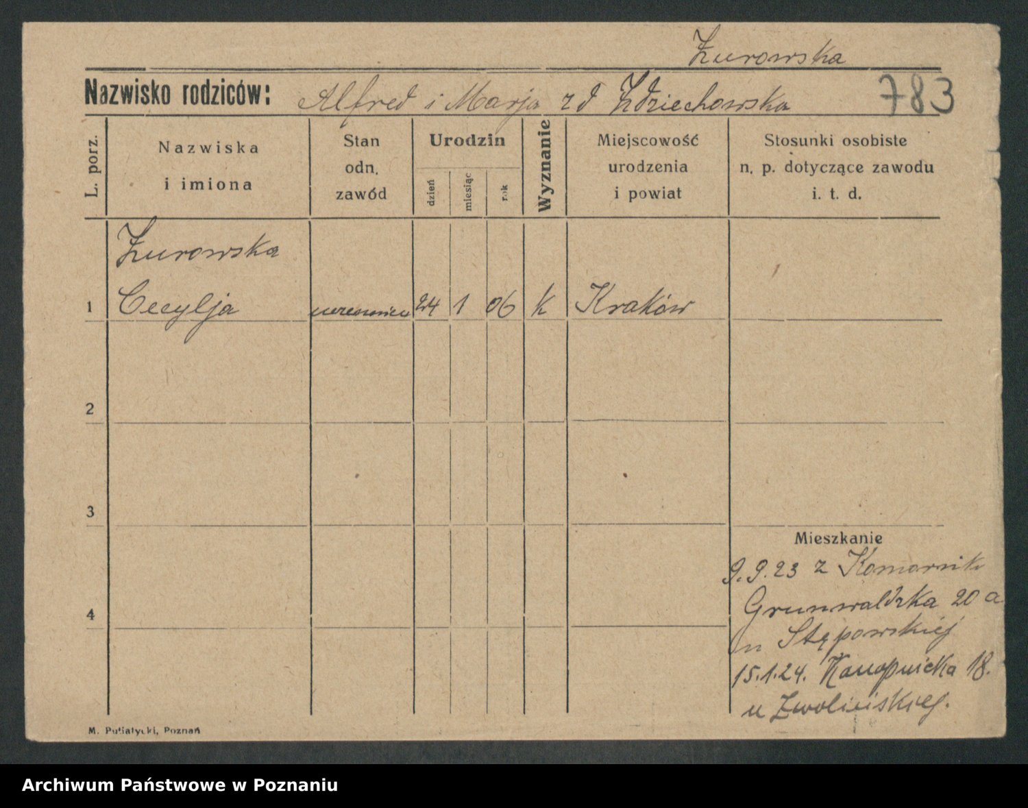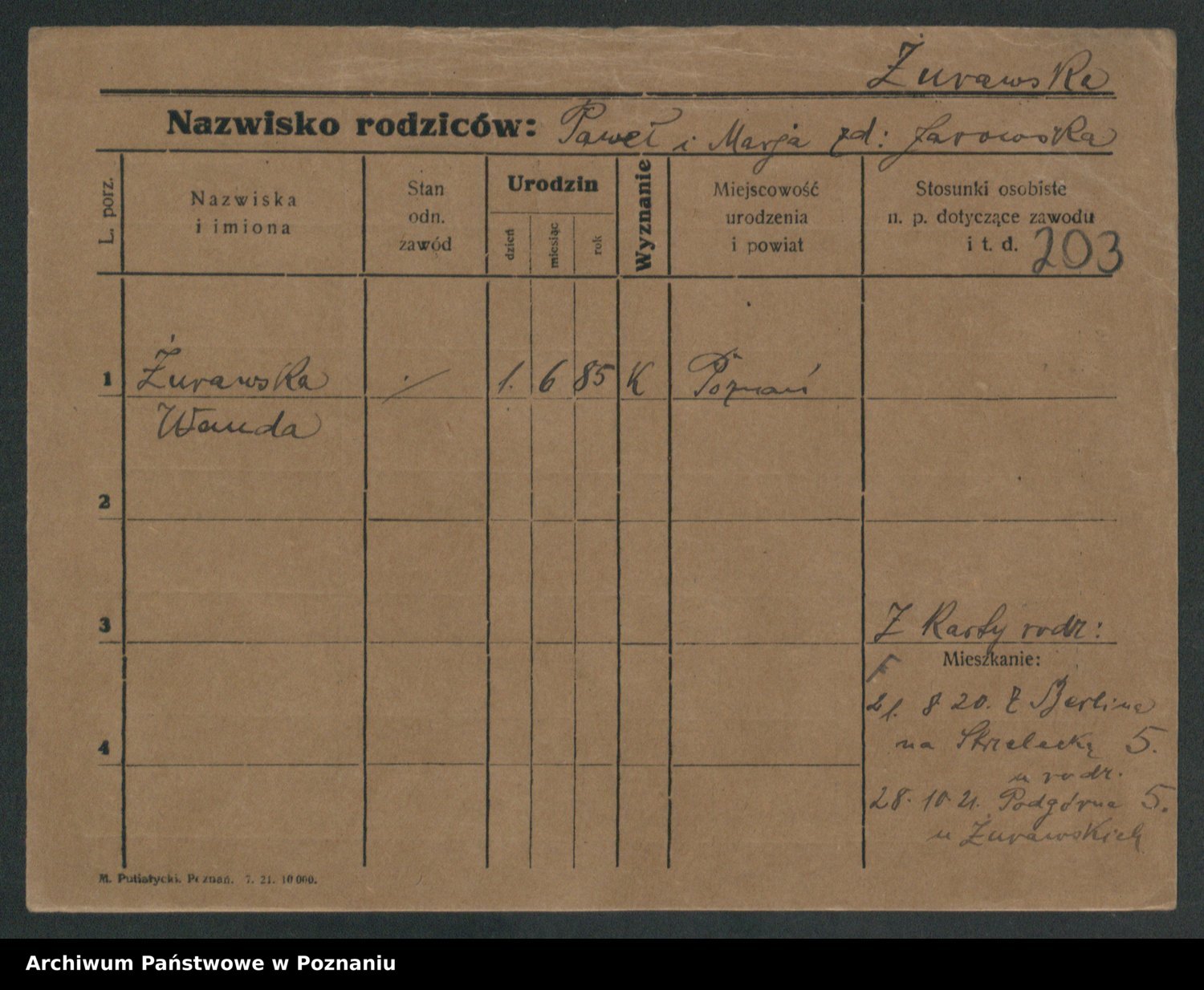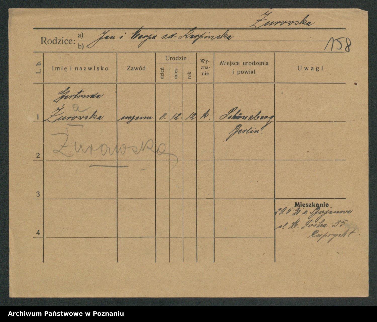 Zurawski, Marja Anna Franciszka
