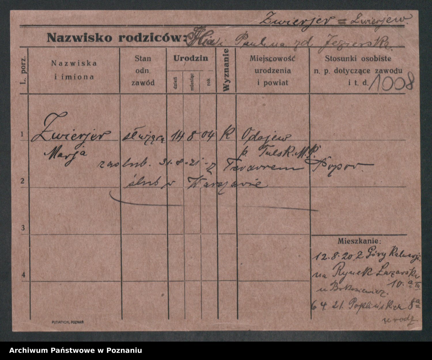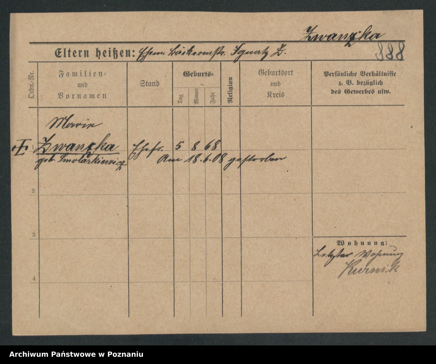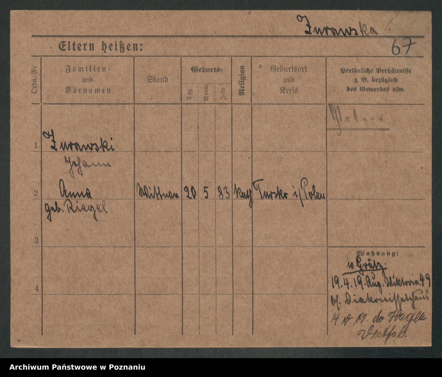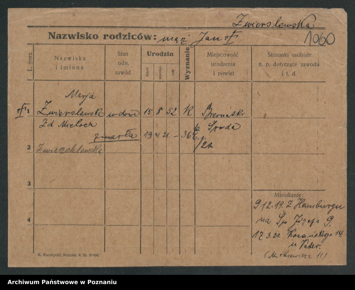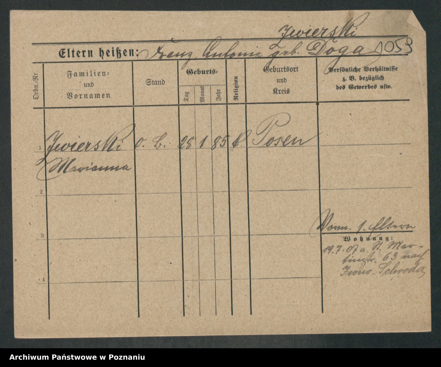 Zwierschlewski z.d. Smarza I voto Preuss, Marianna