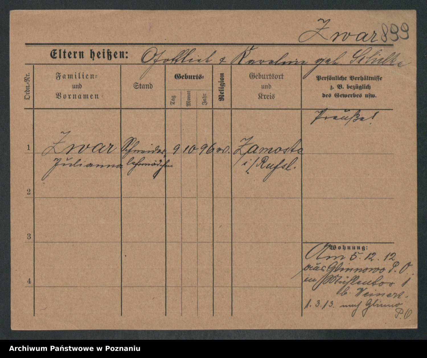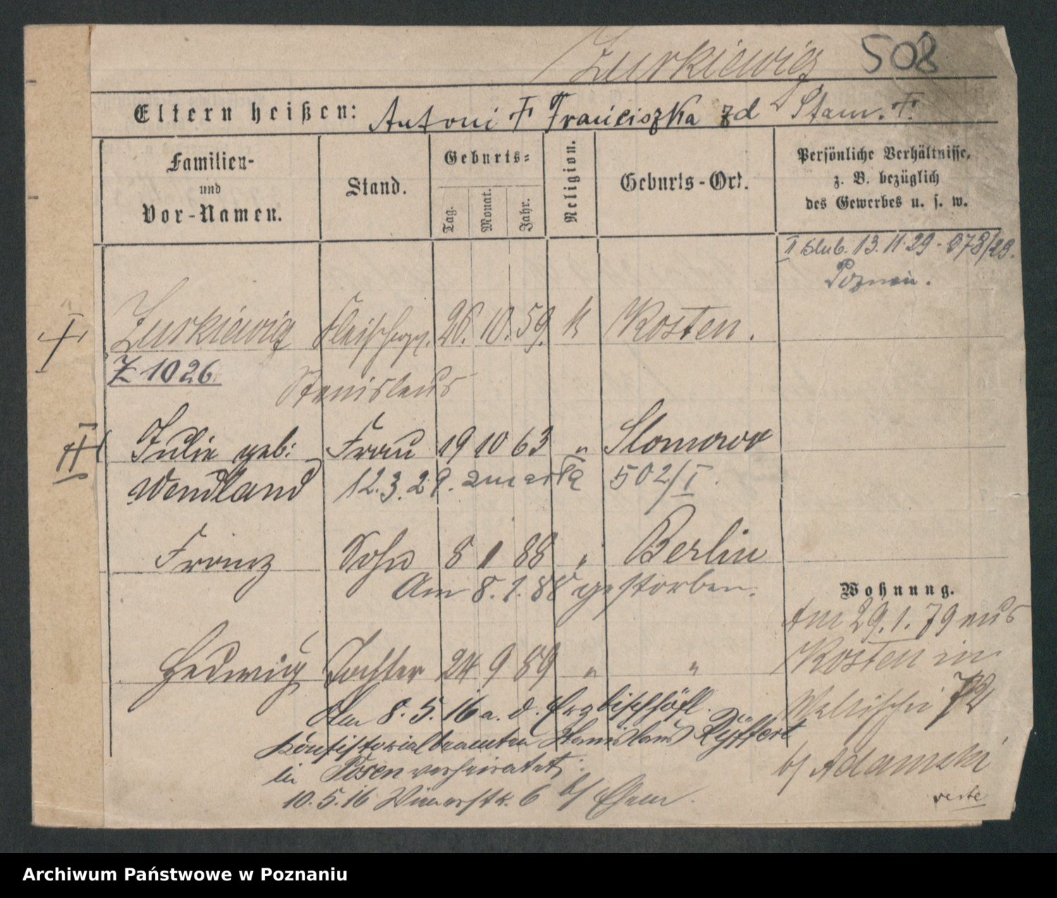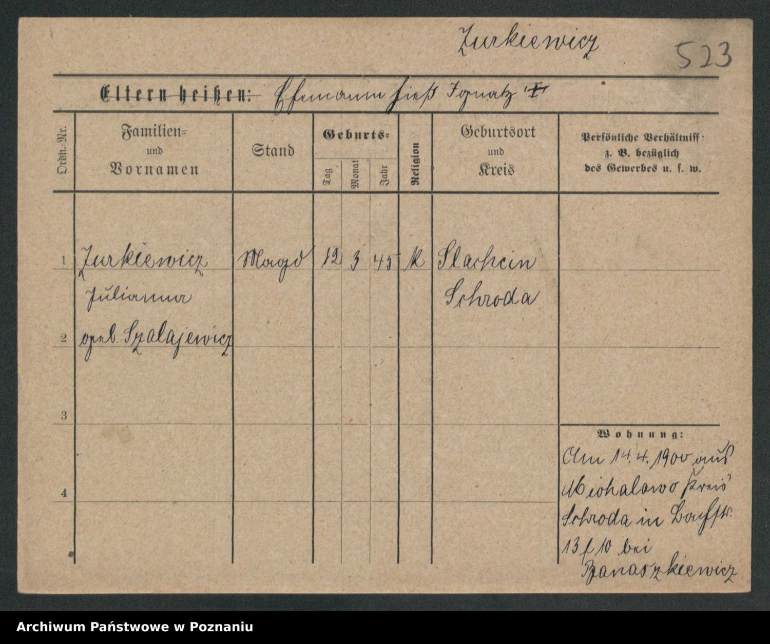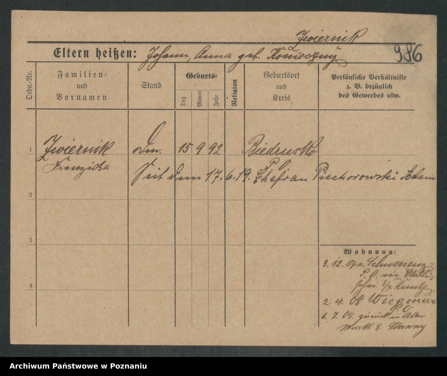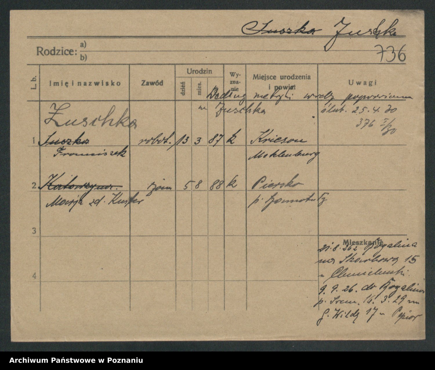 Zwierschlewski z.d. Smarza I voto Preuss, Marianna