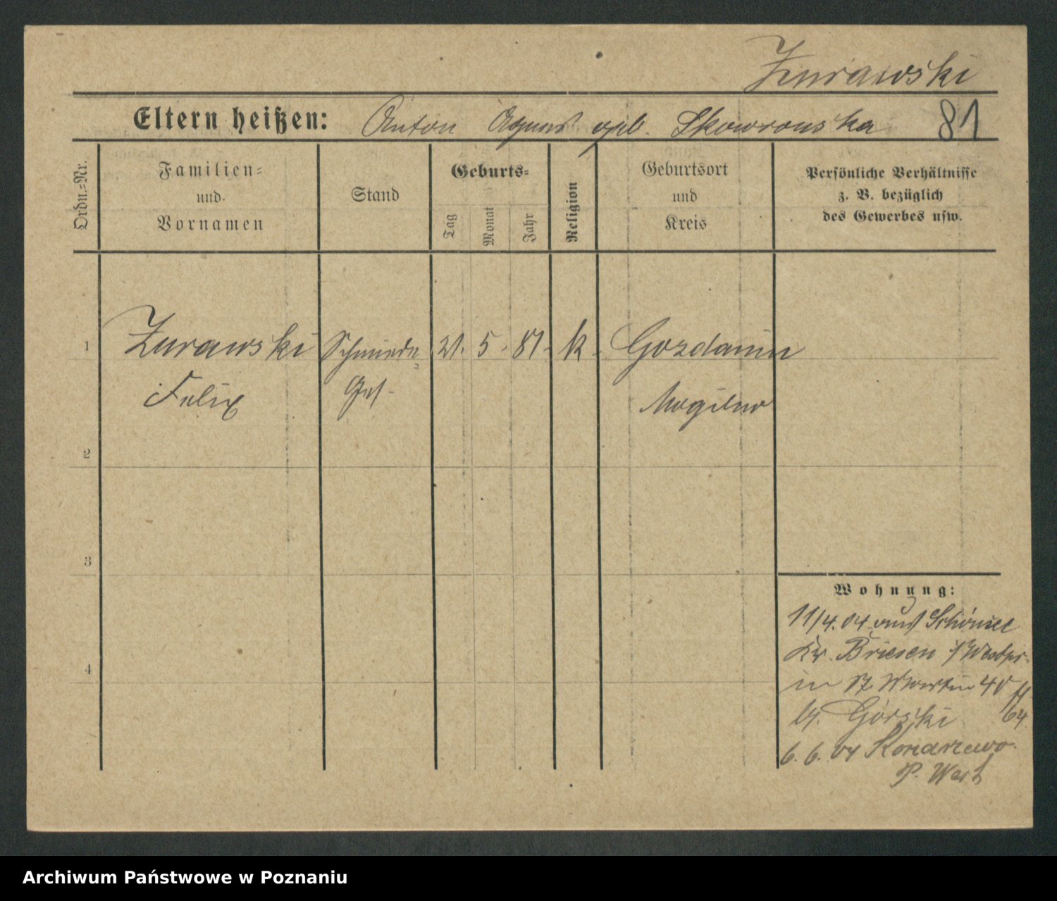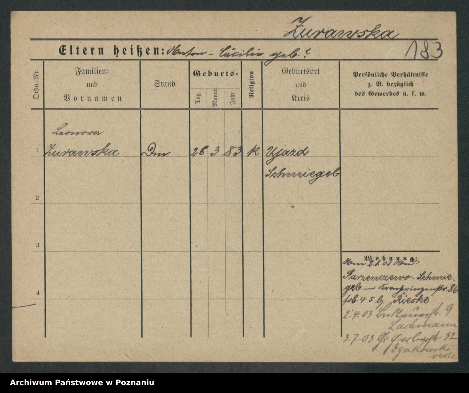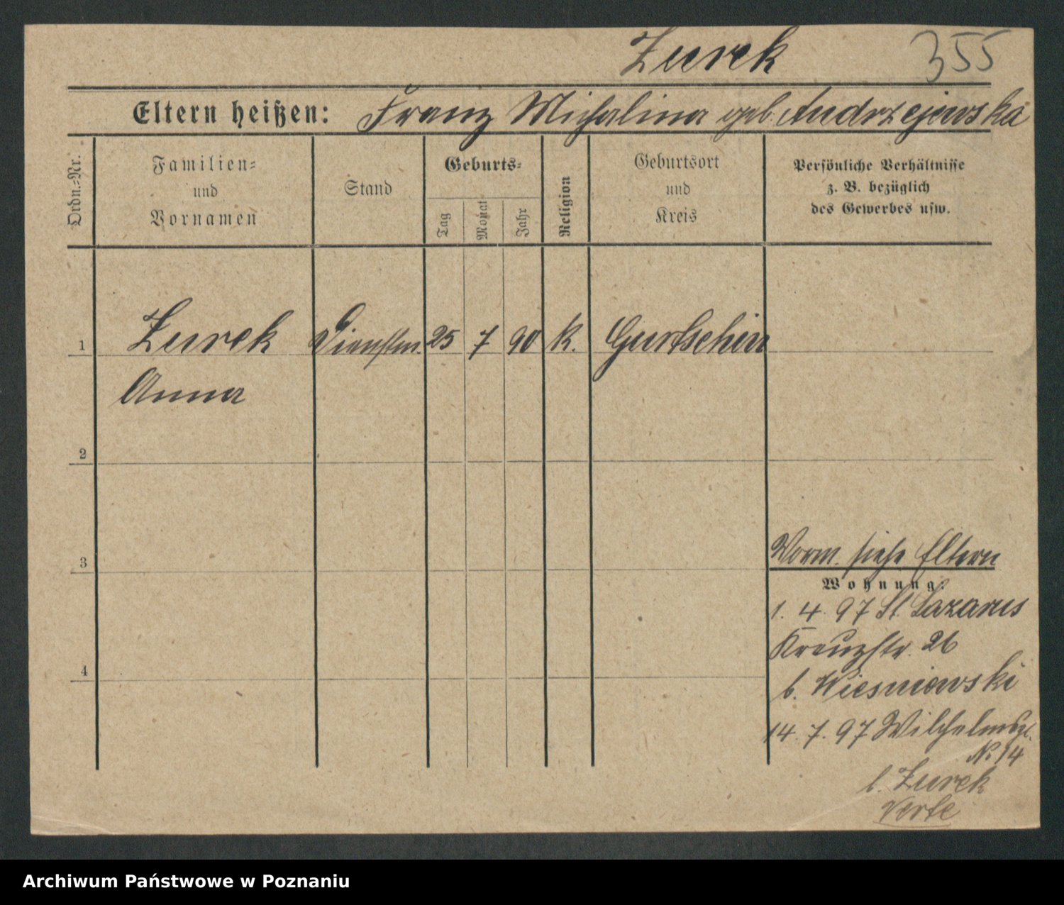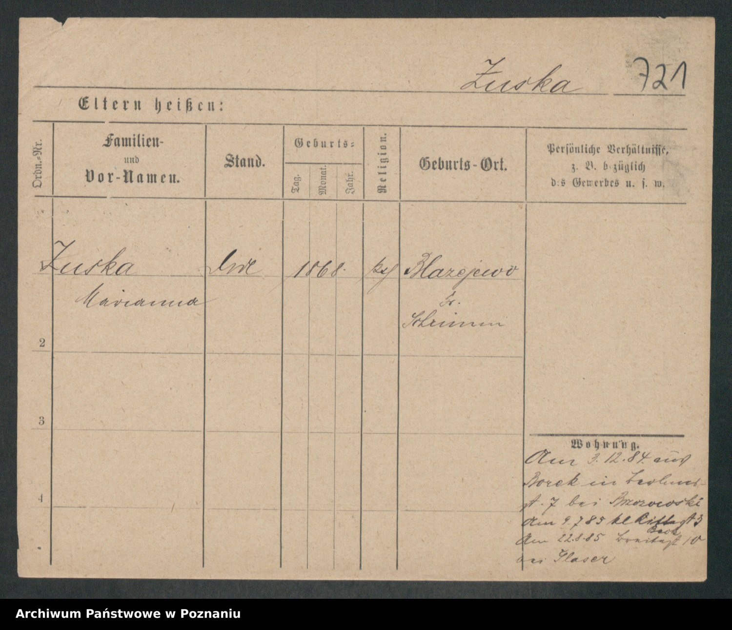 Zwierschlewski z.d. Smarza I voto Preuss, Marianna