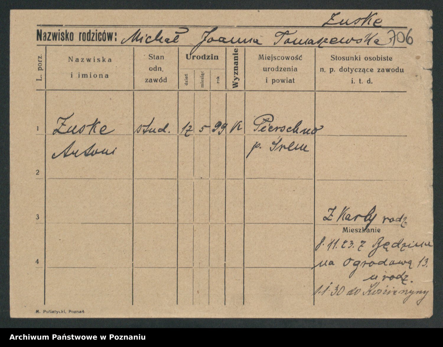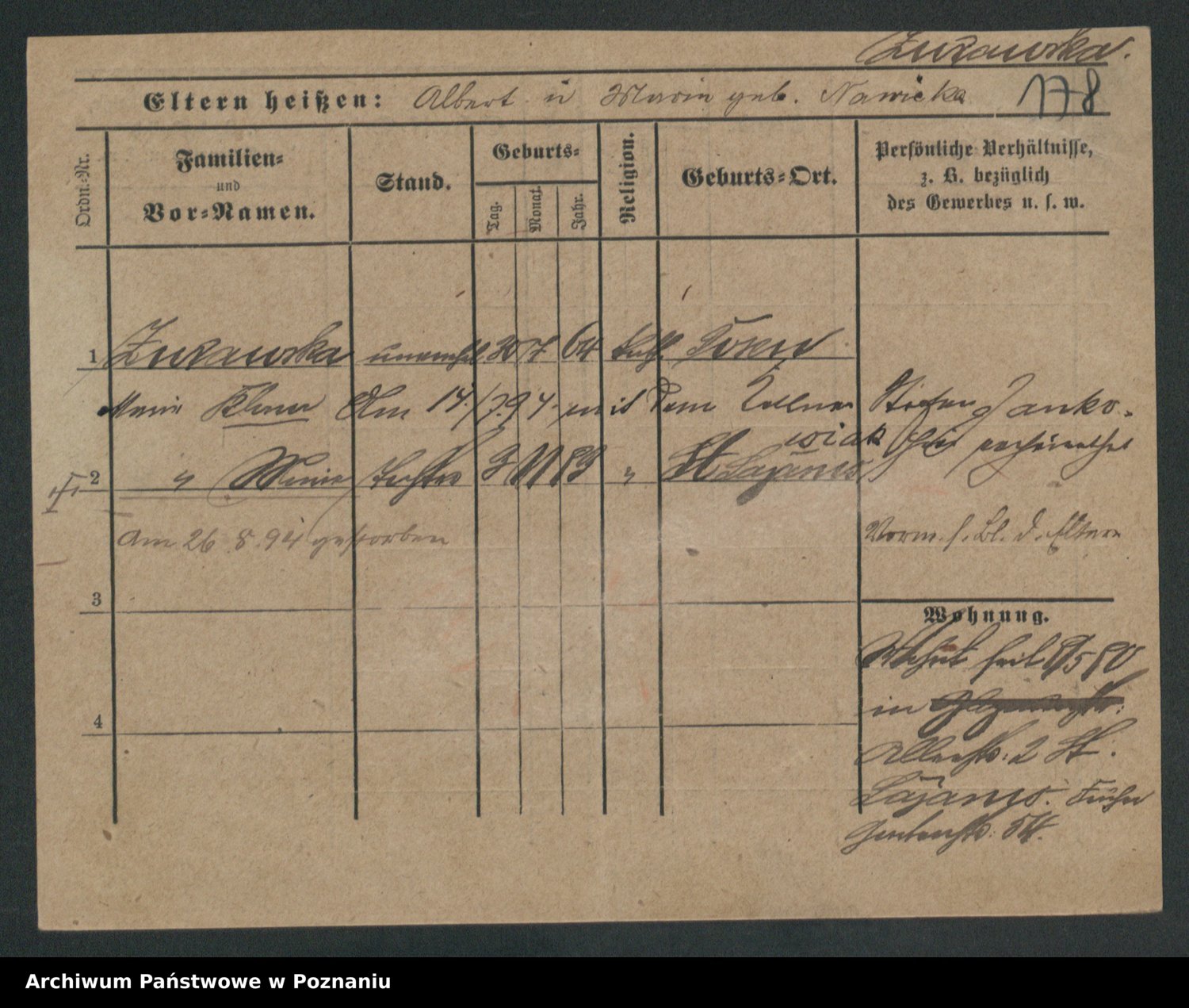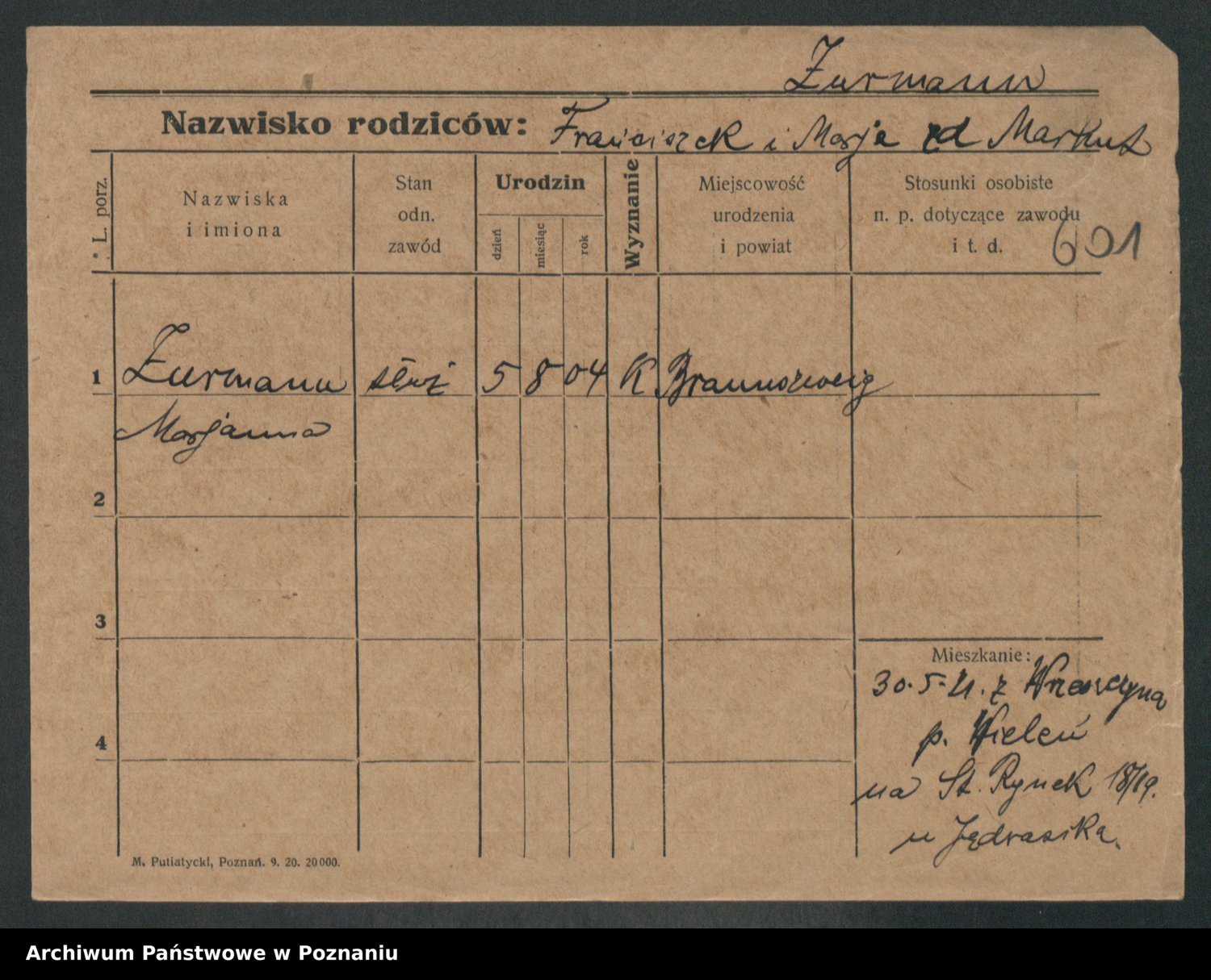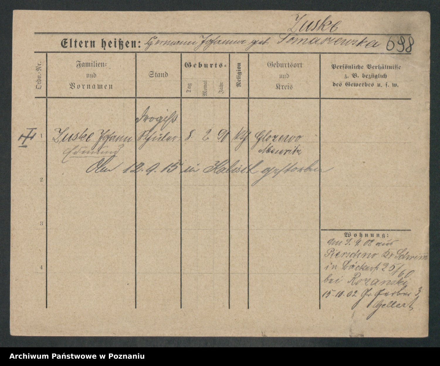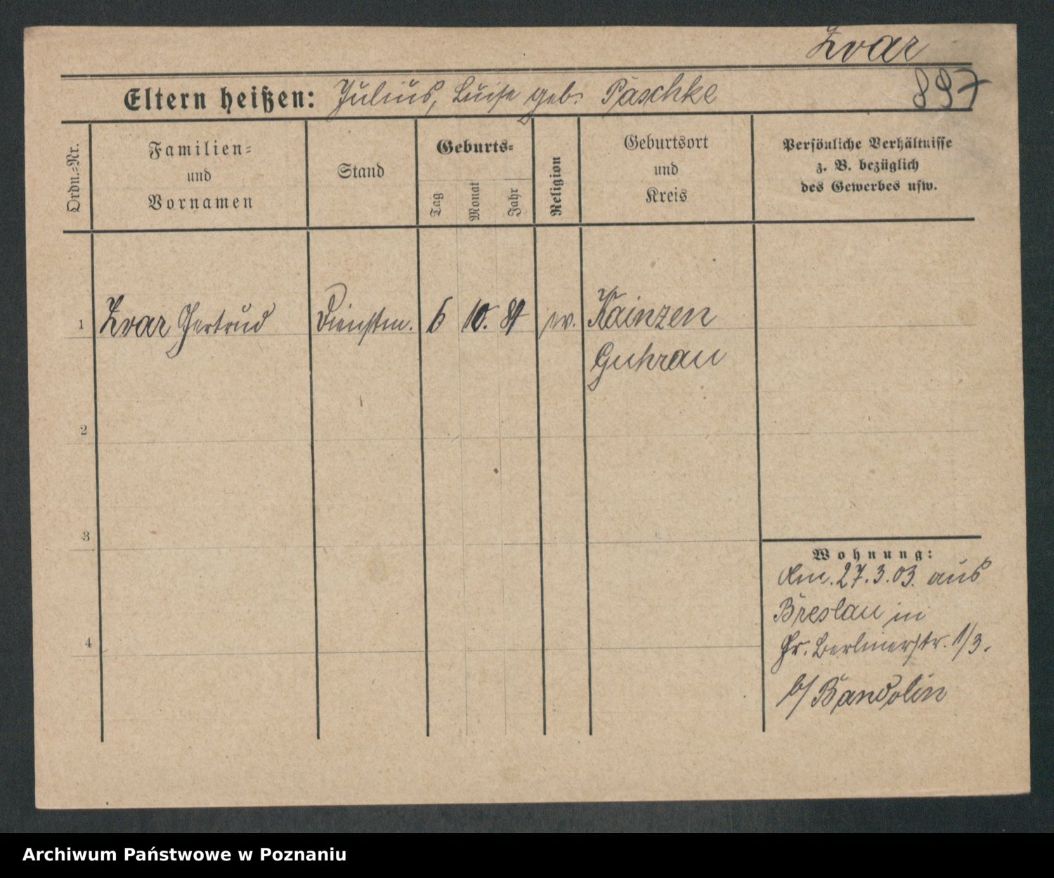 Zwierschlewski z.d. Smarza I voto Preuss, Marianna