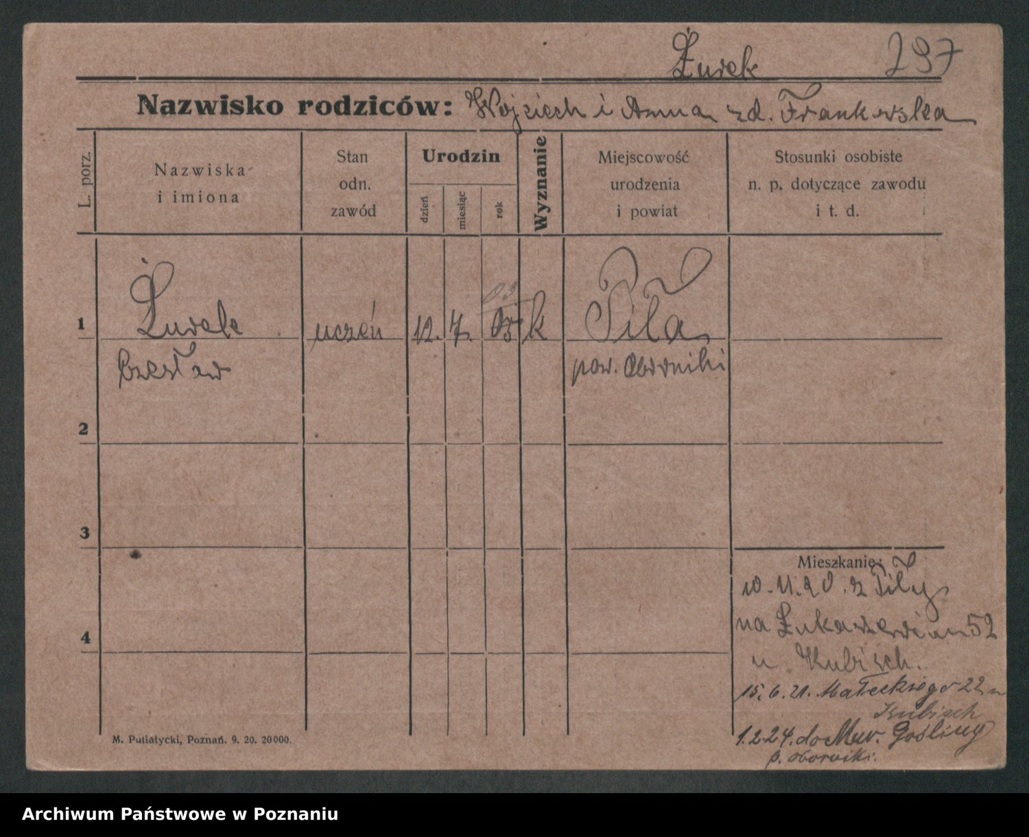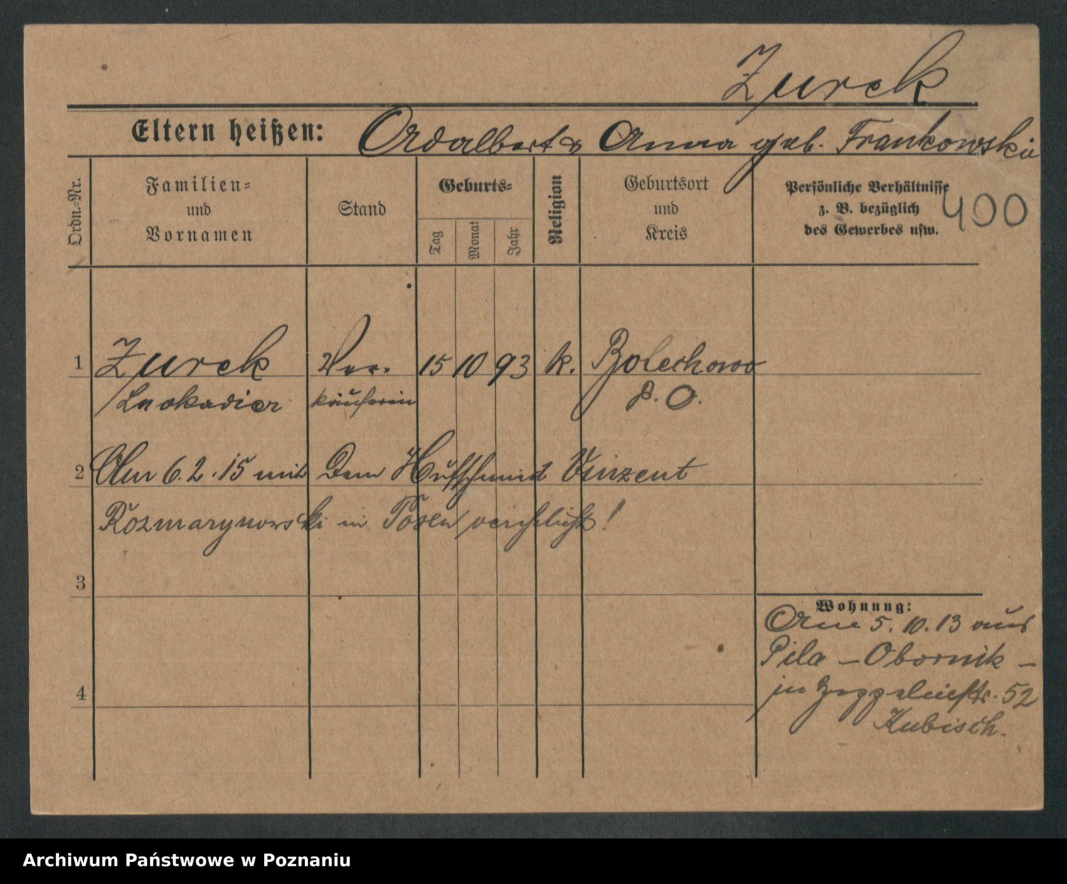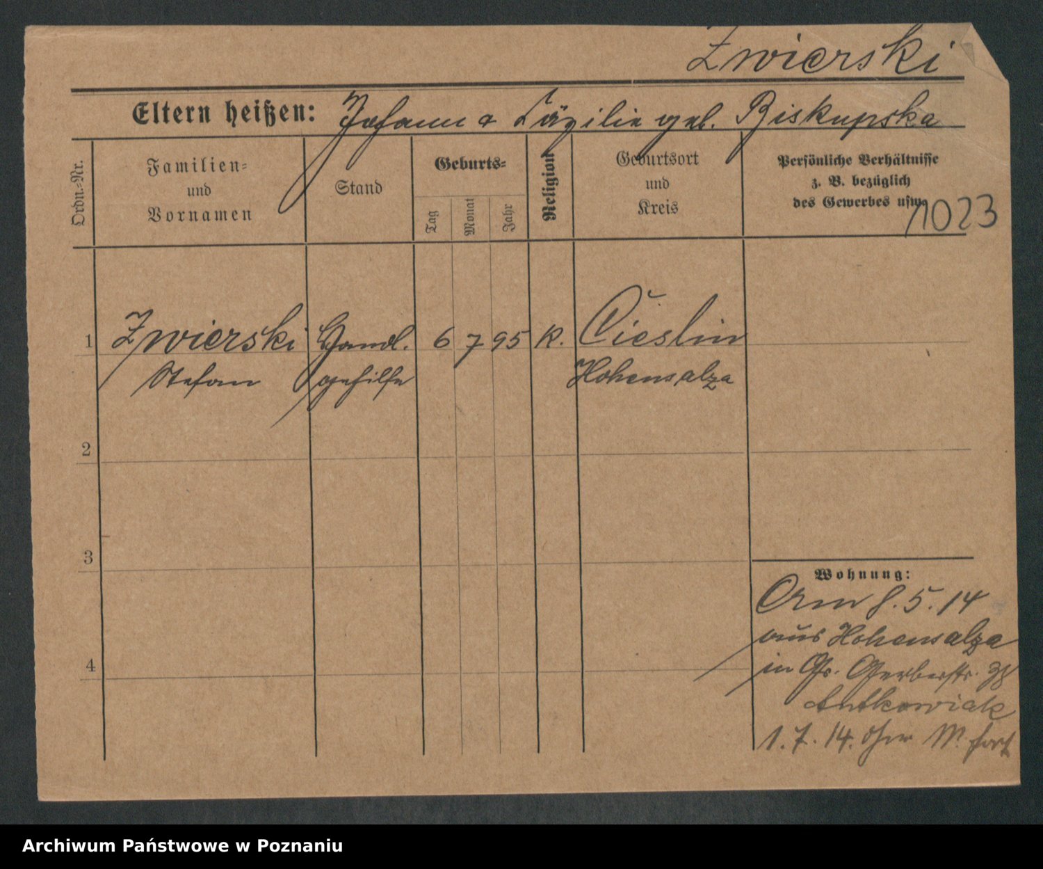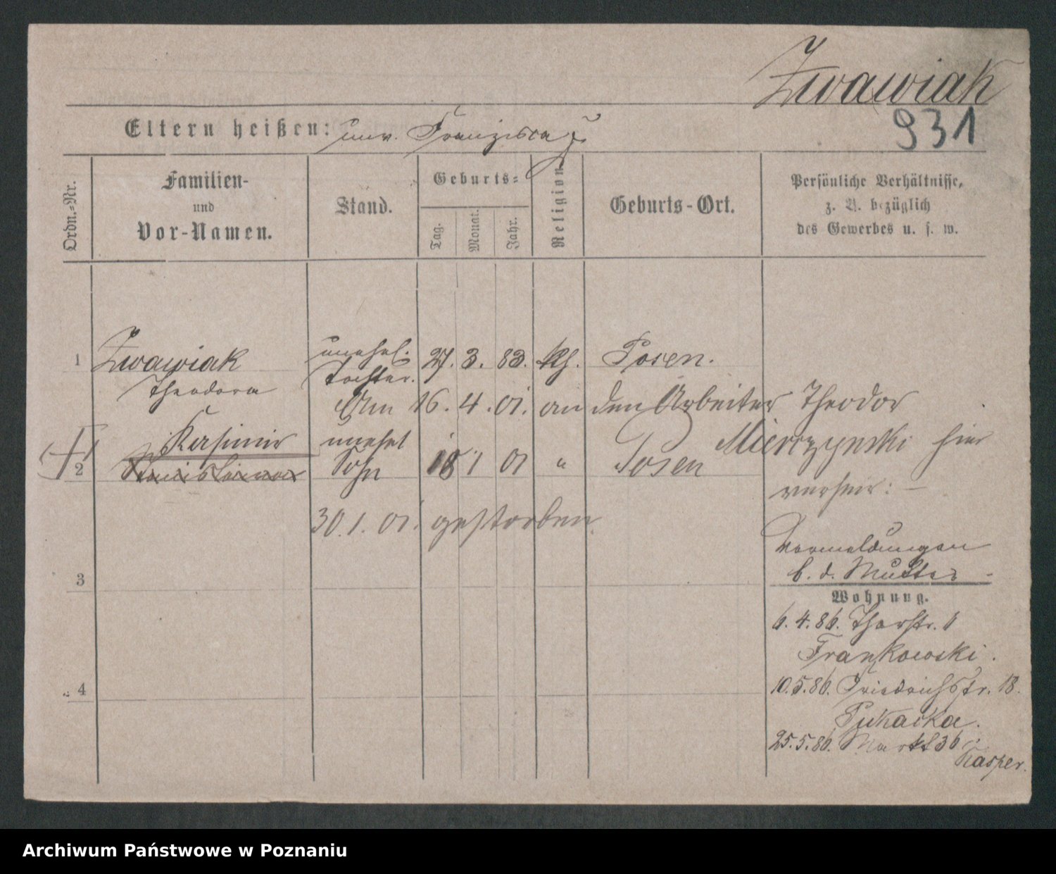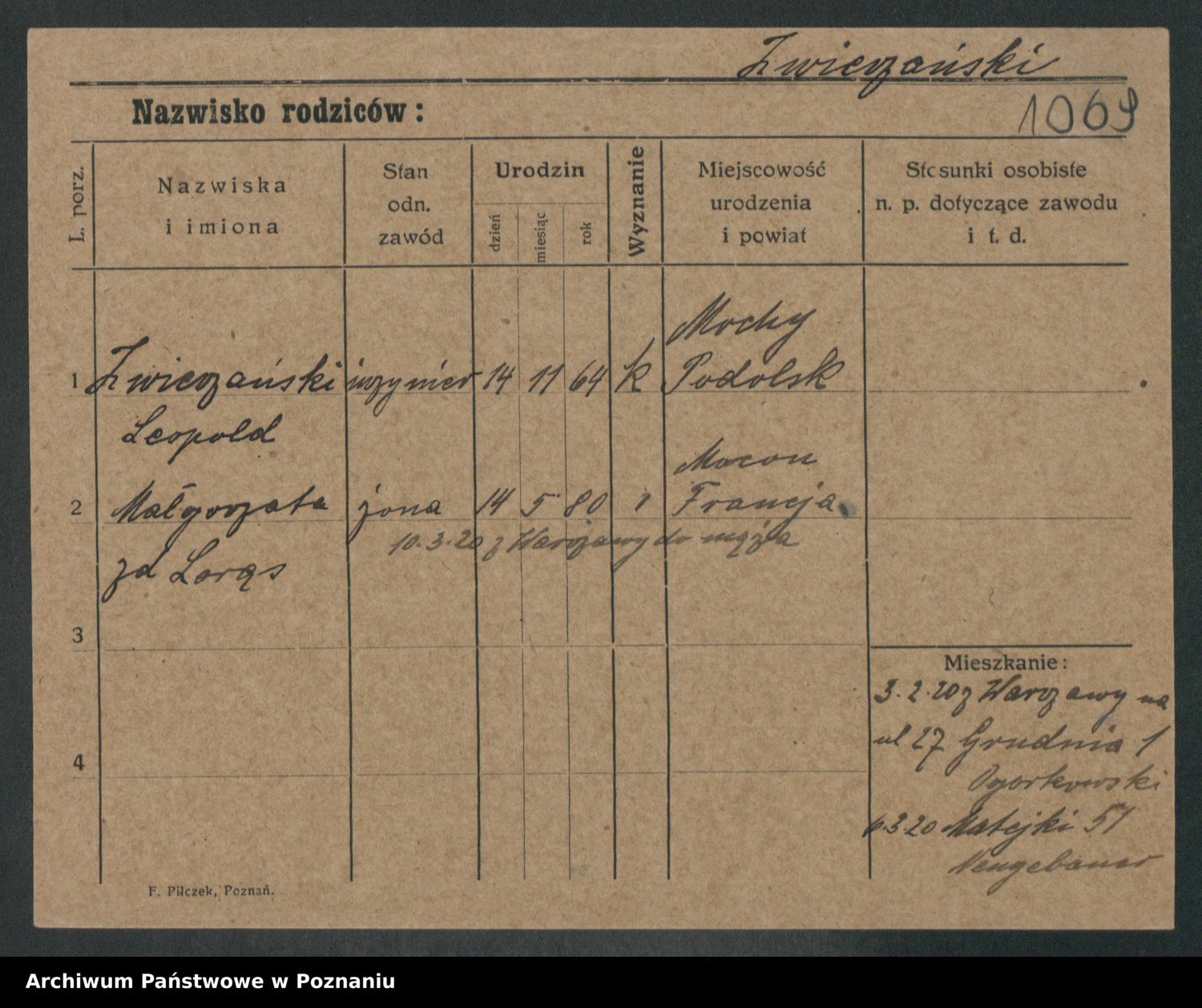 Zwierschlewski z.d. Smarza I voto Preuss, Marianna