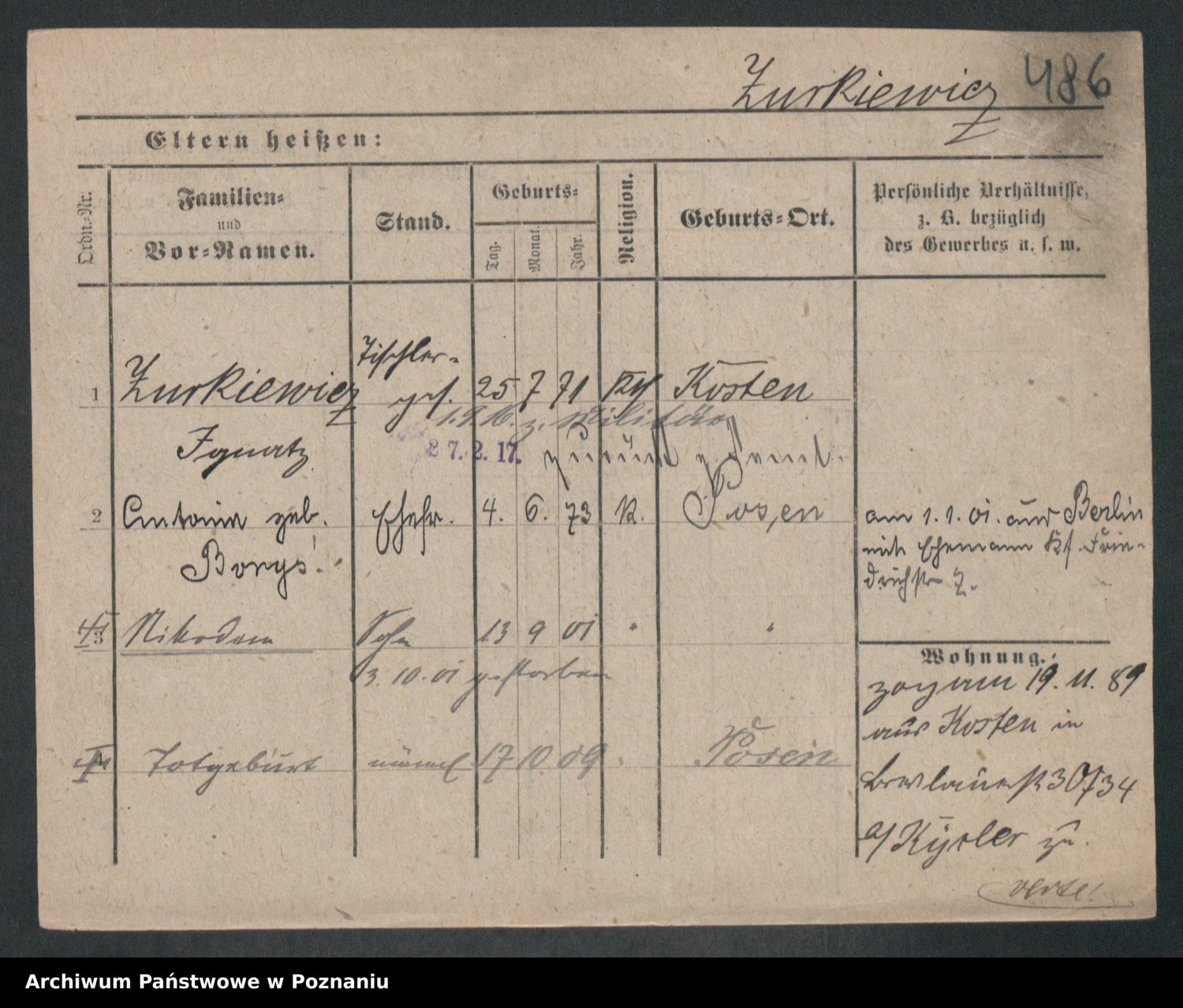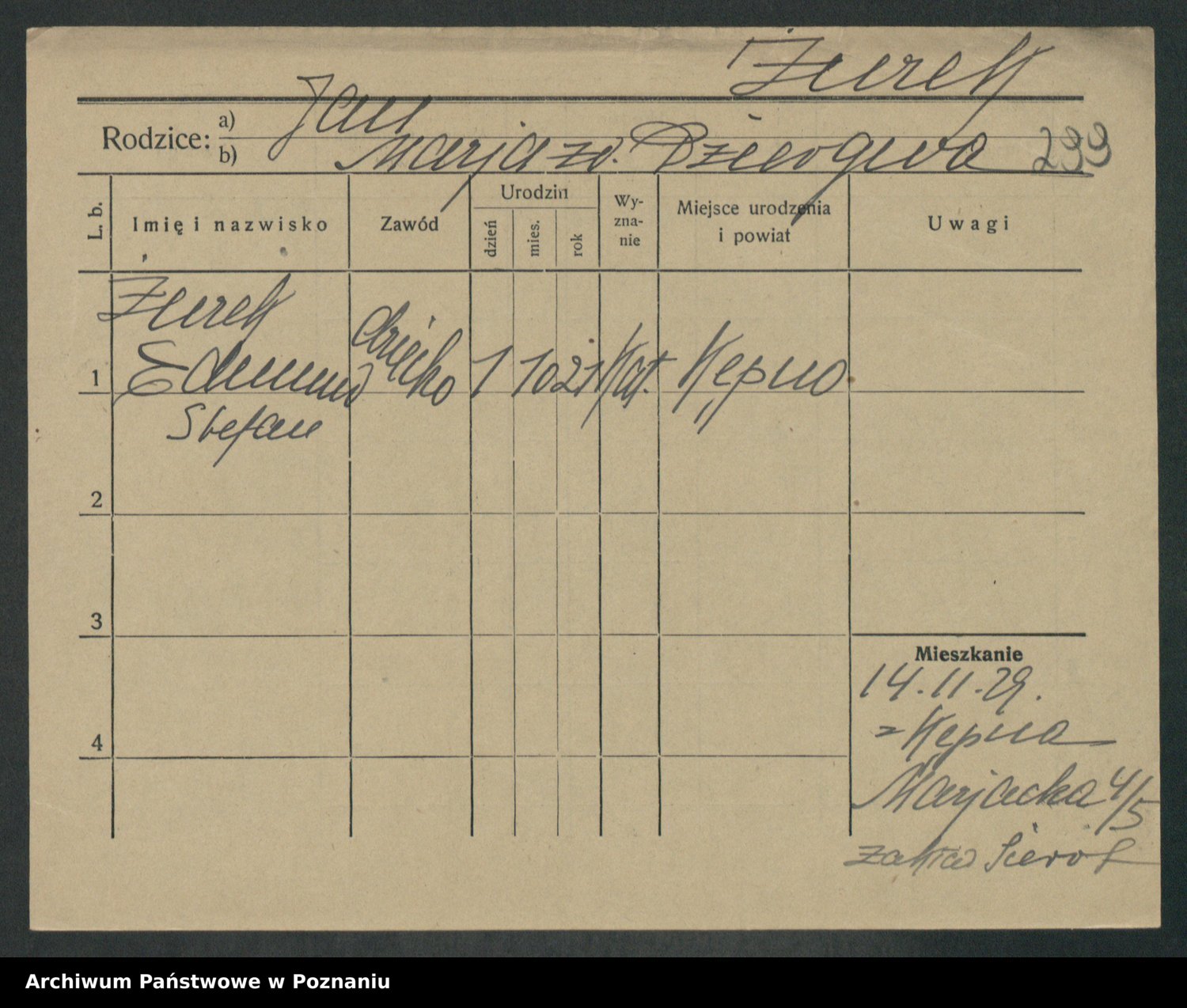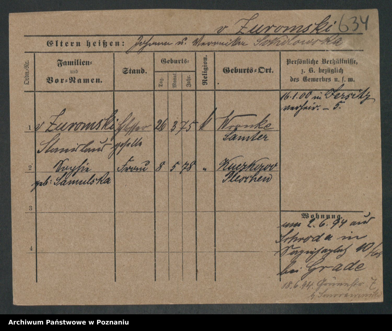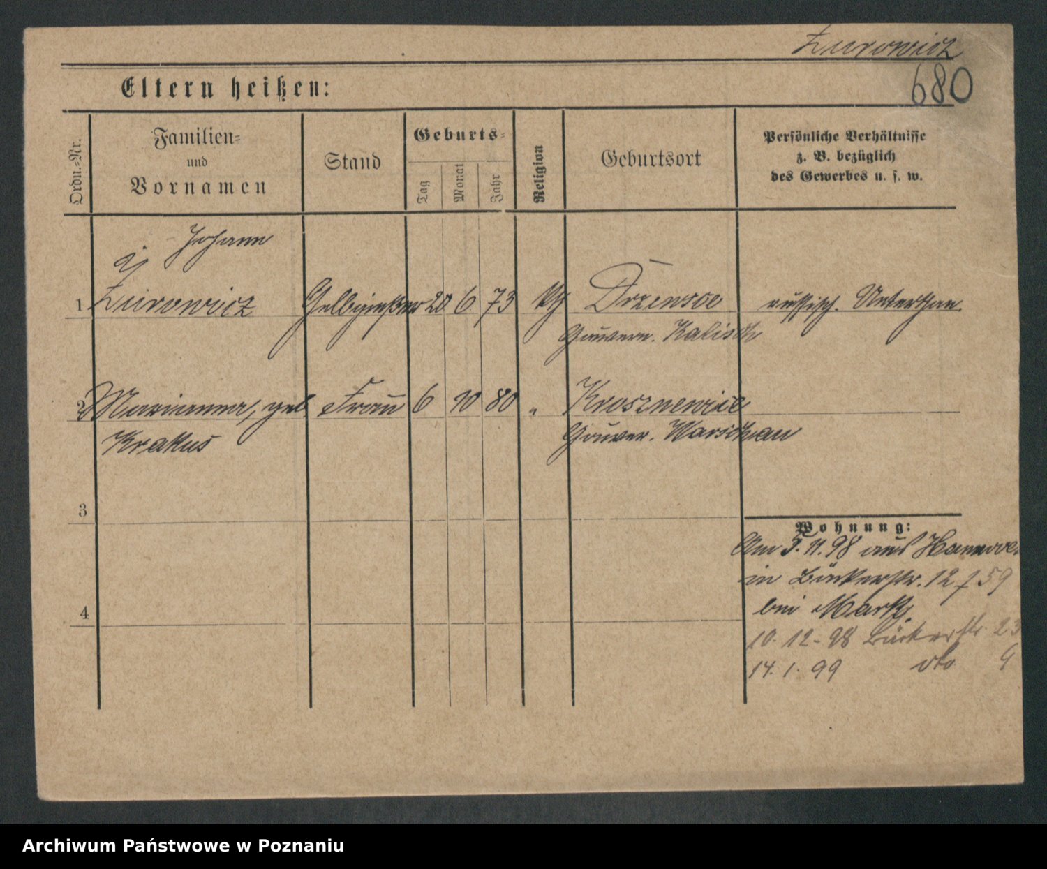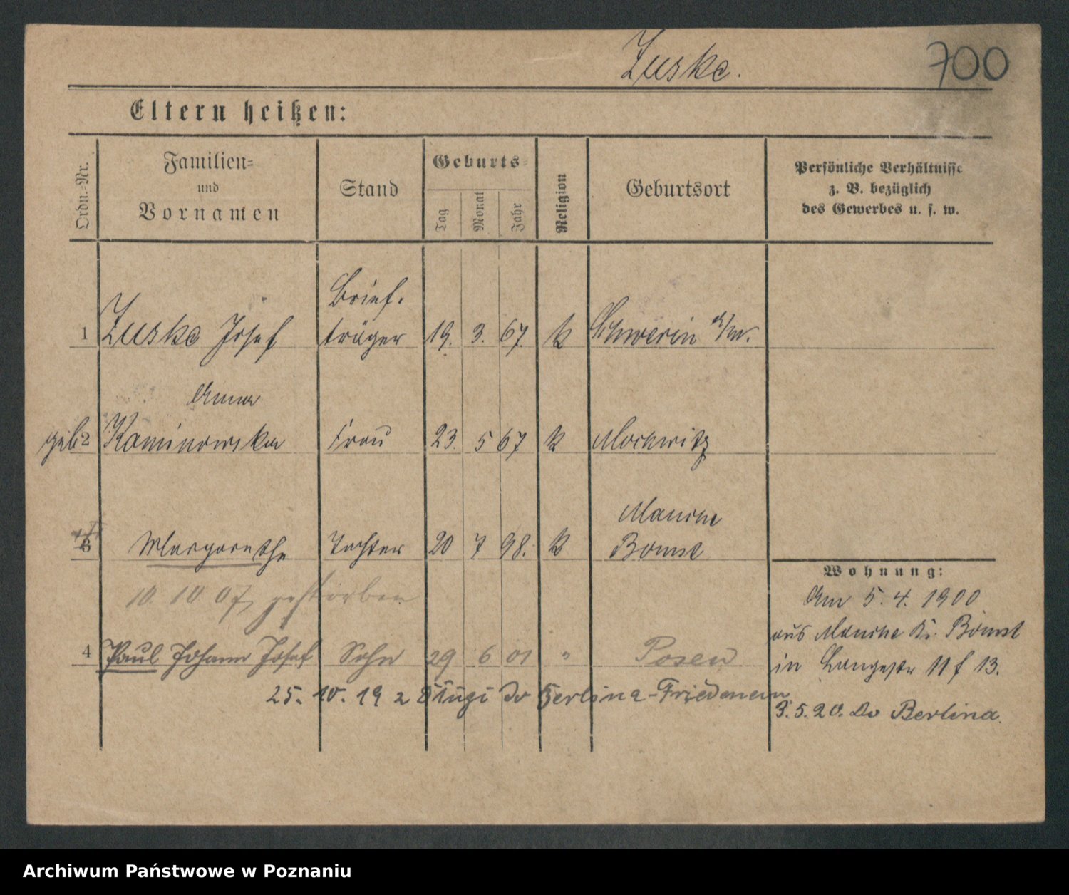 Zwierschlewski z.d. Smarza I voto Preuss, Marianna