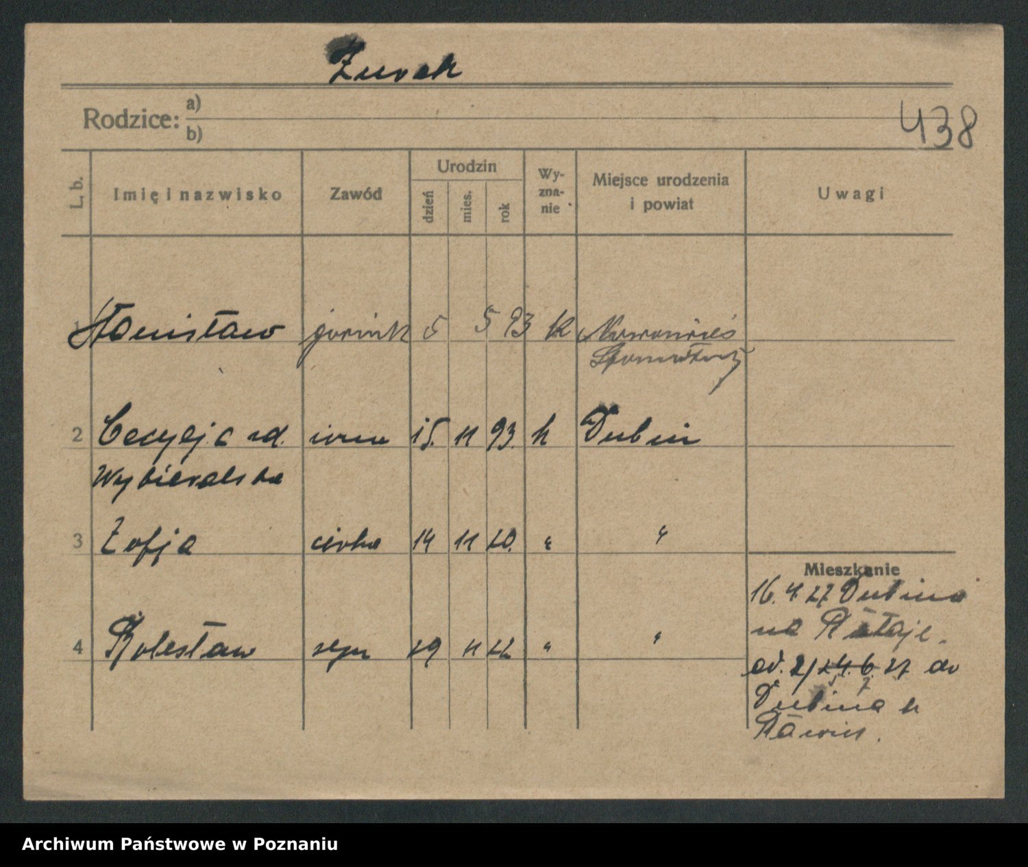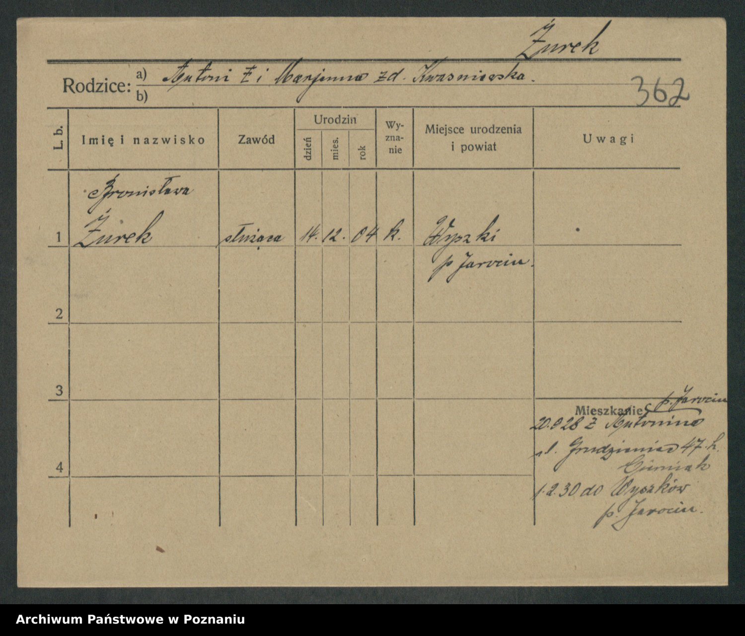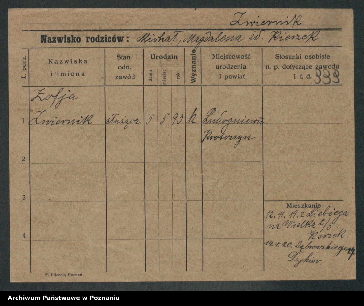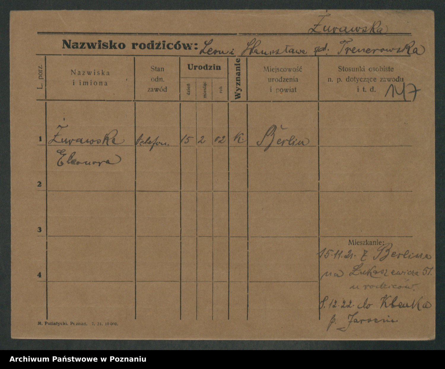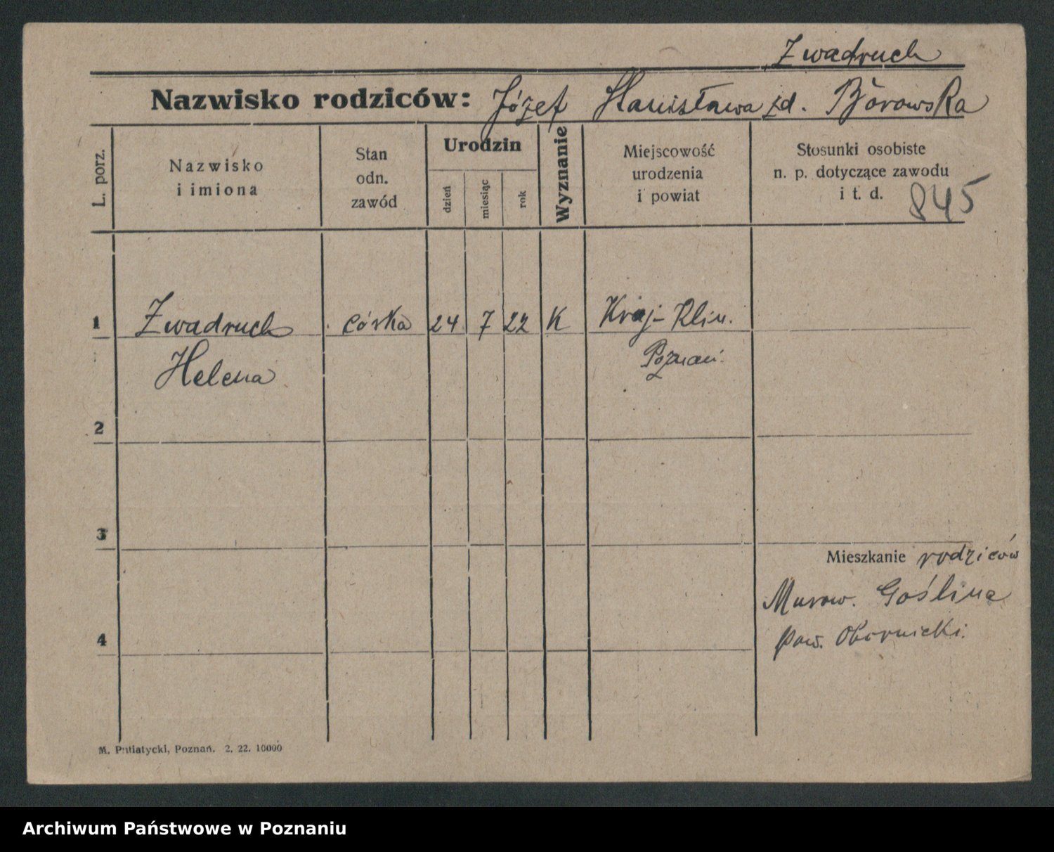 Zwierzlewski z.d. Stachecka I voto Dobrowolska, Margarethe