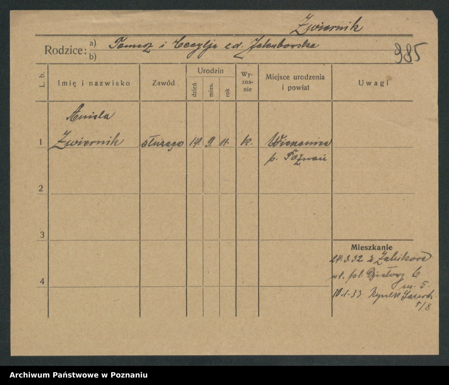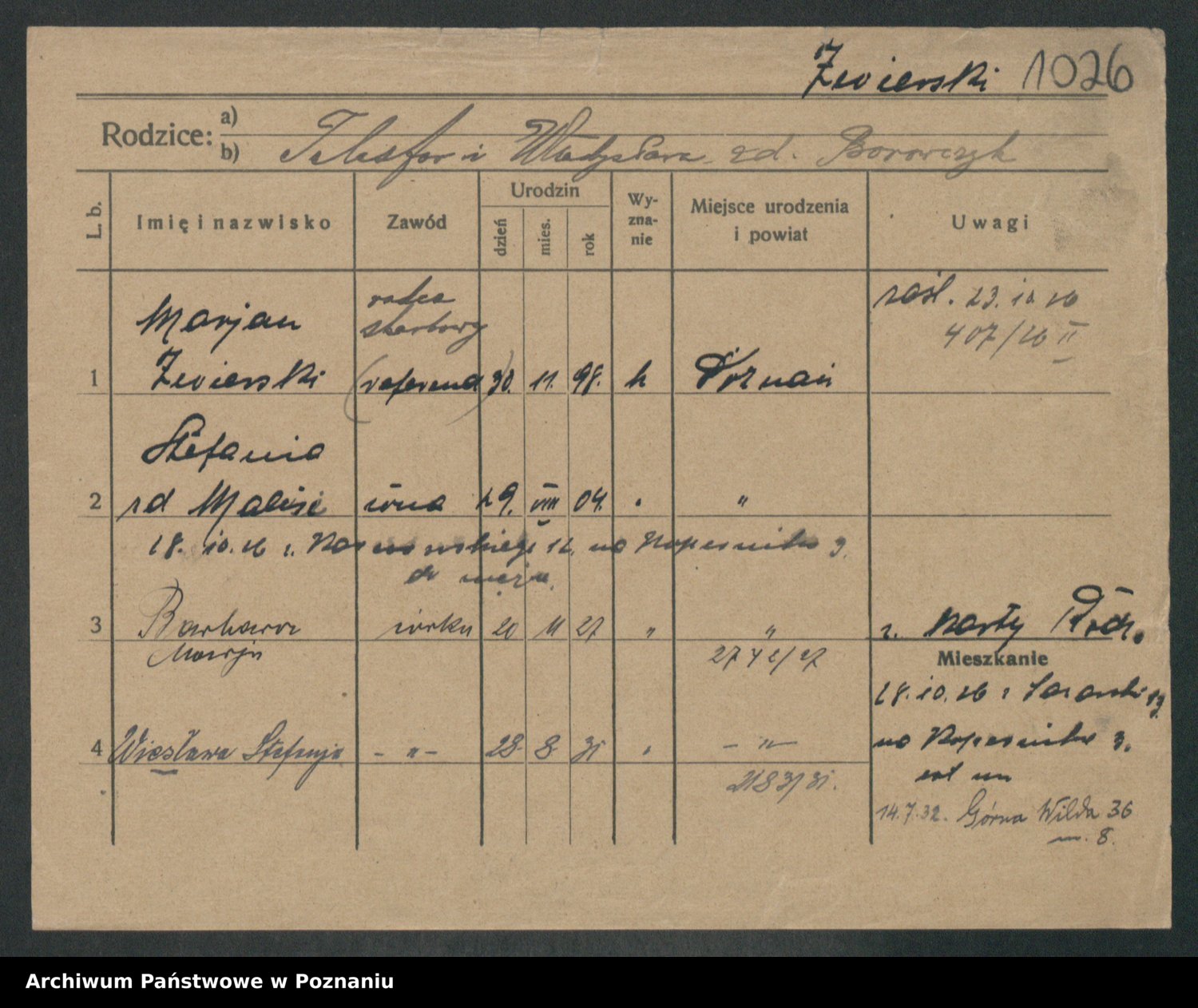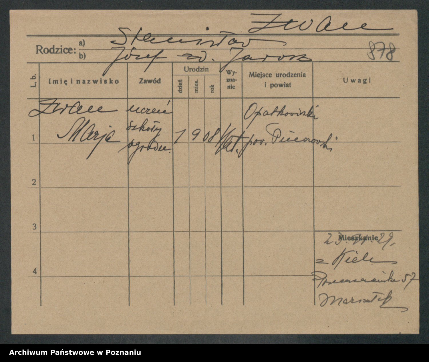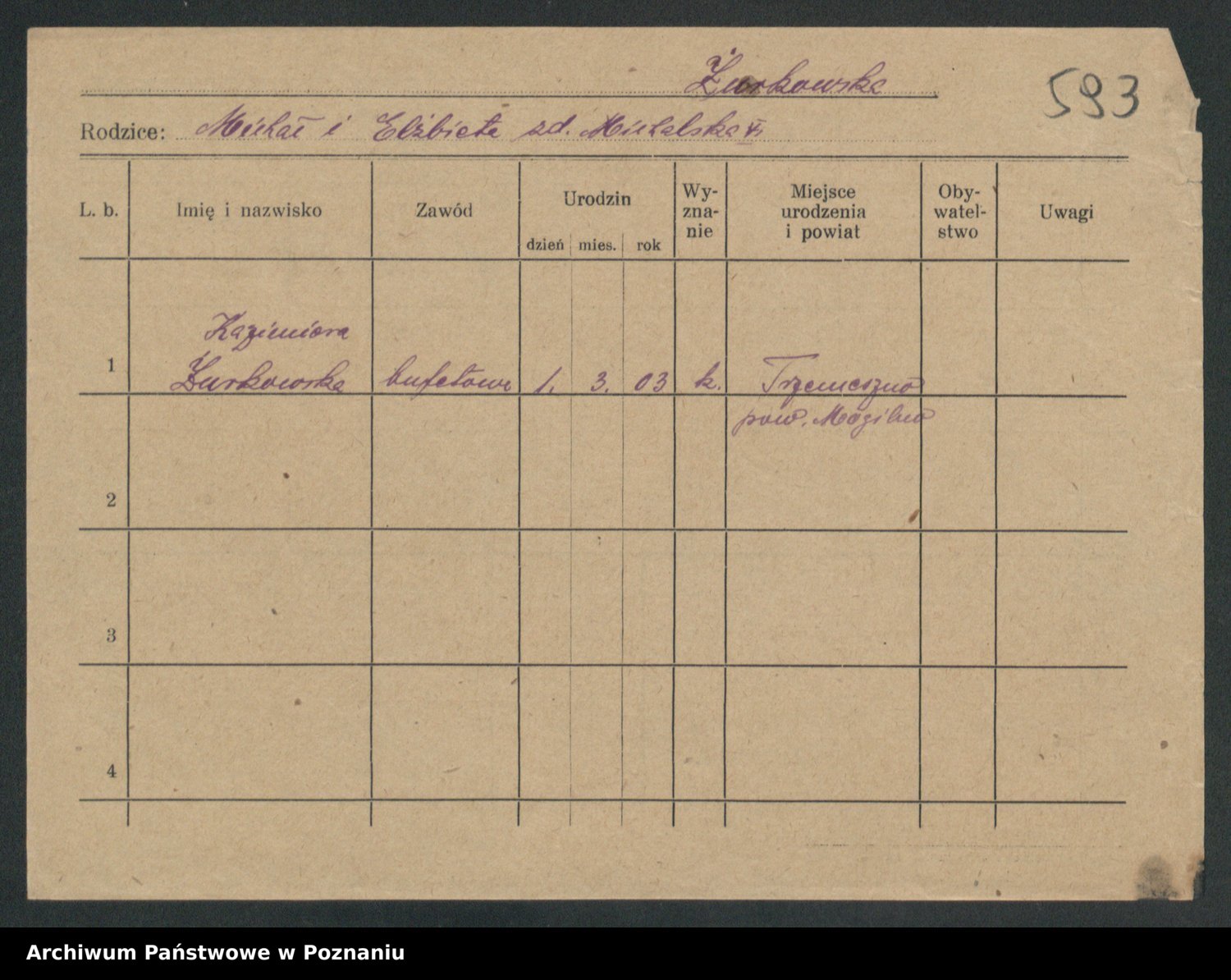 Zwierslewska Zwierzchlewska z.d. Mieloch, Marja