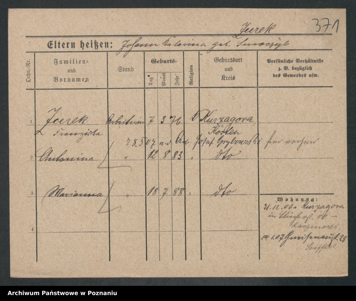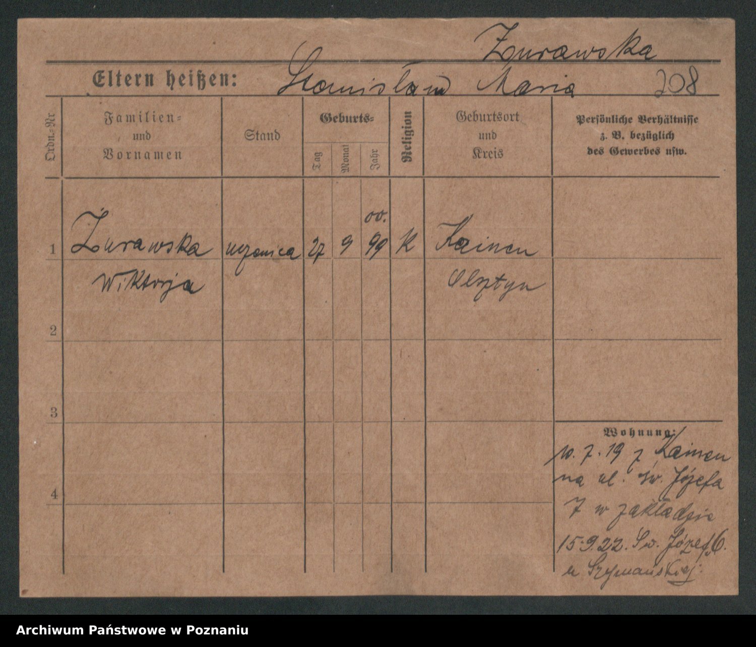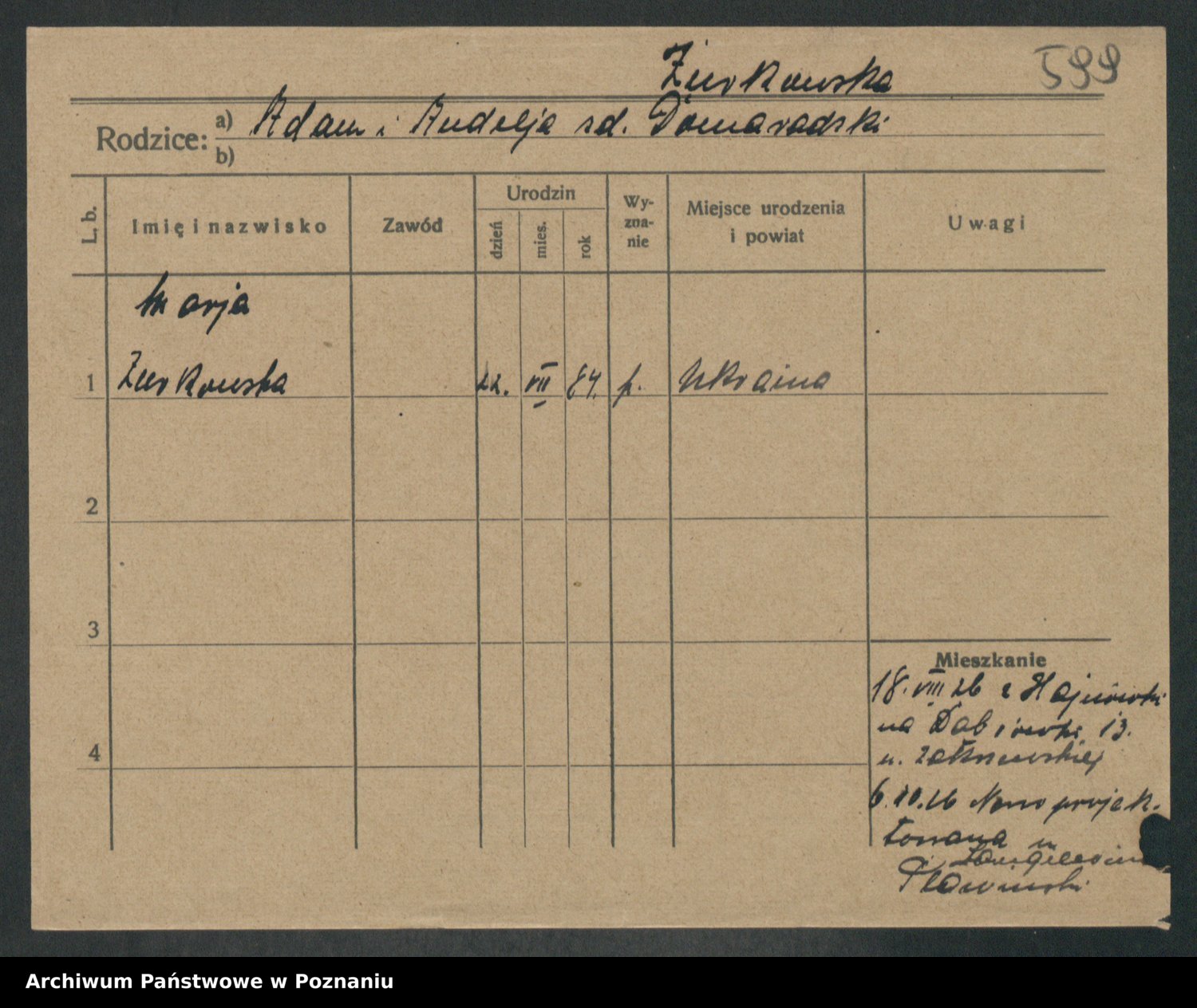 Zurawski z.d. Szöne, Marja