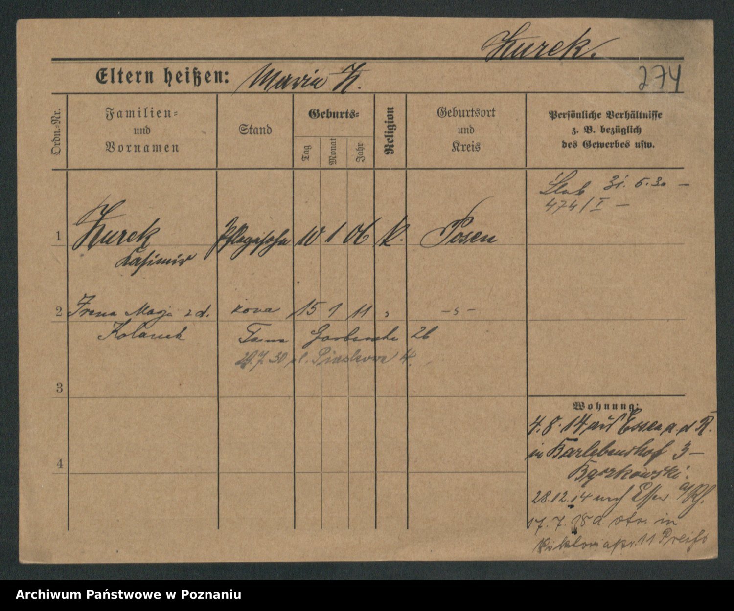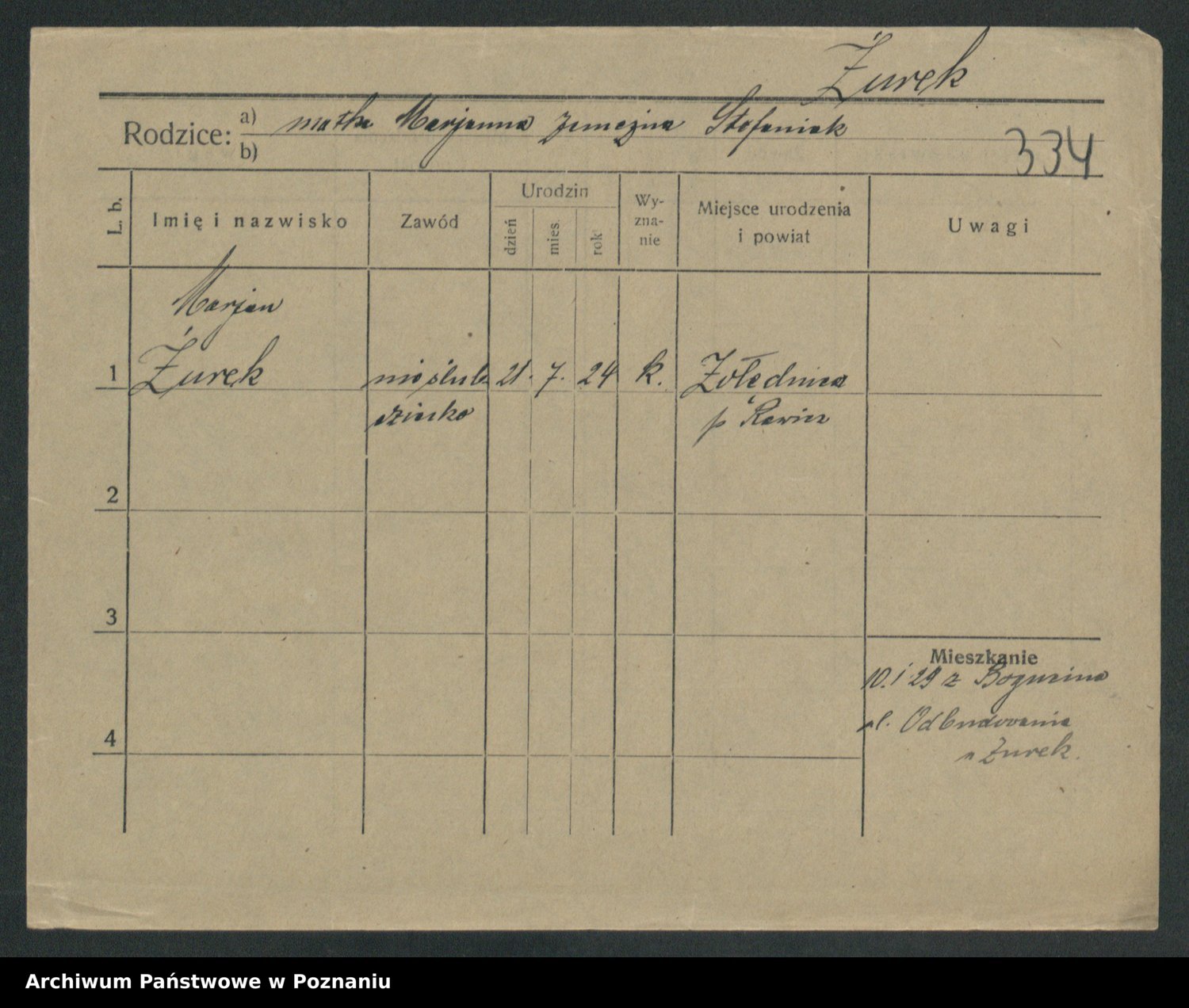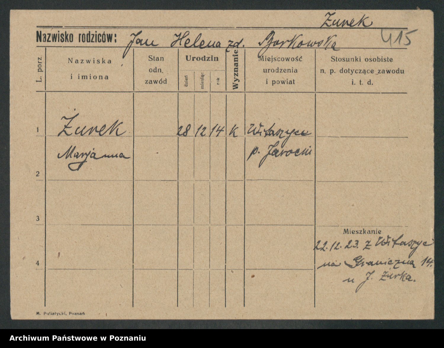 Zurawski z.d. Szöne, Marja