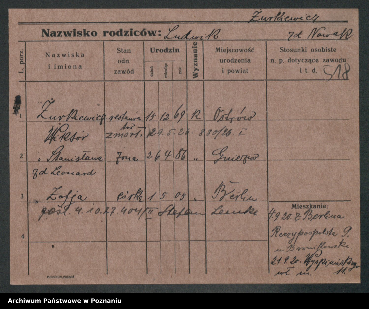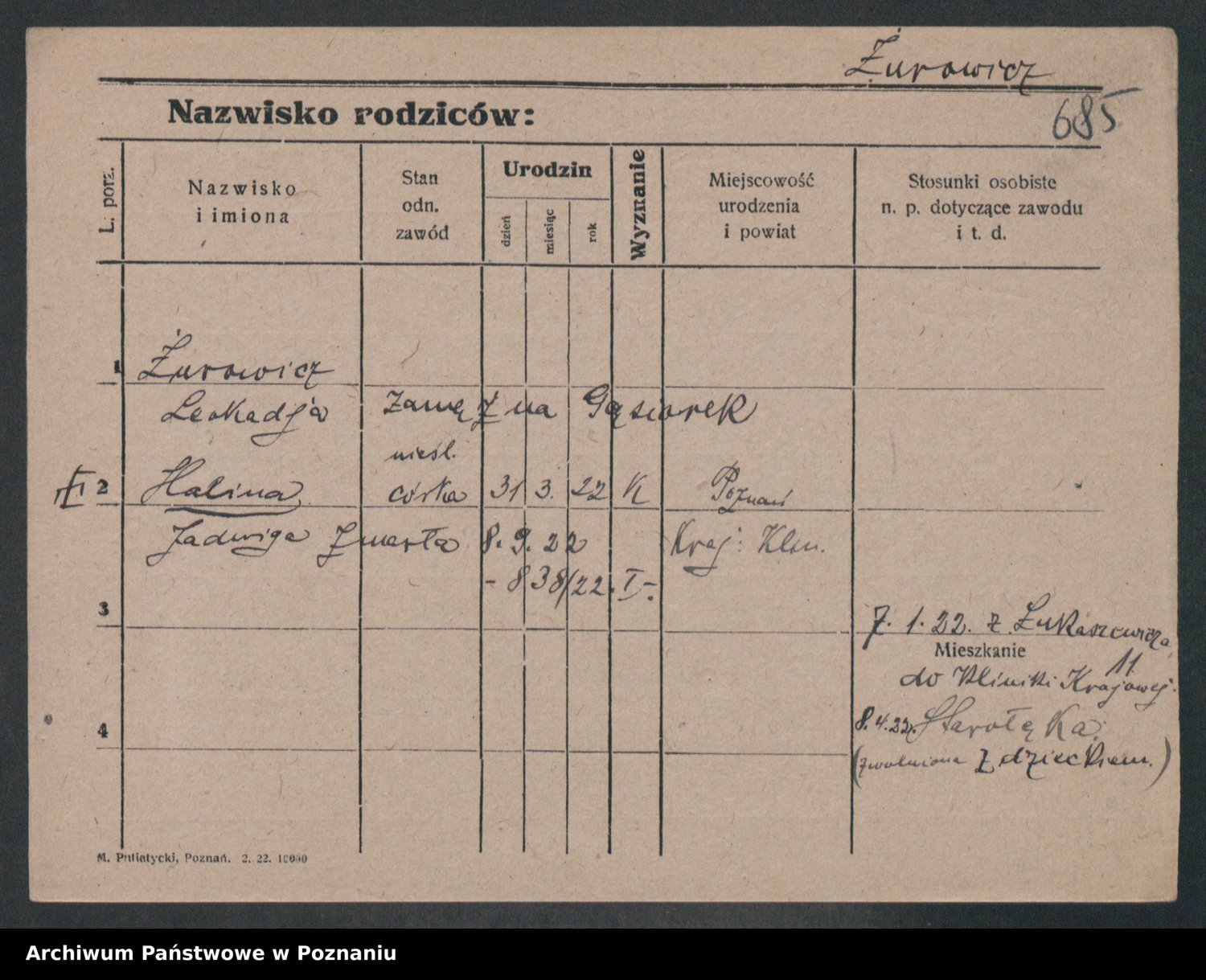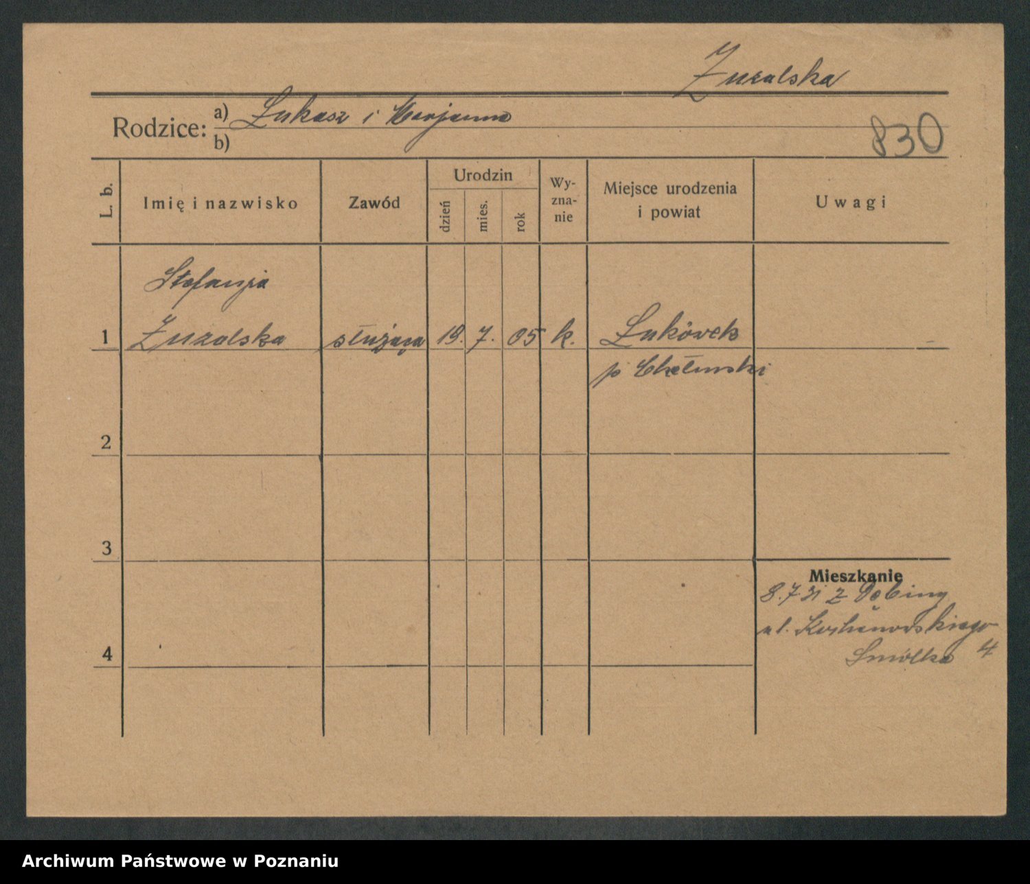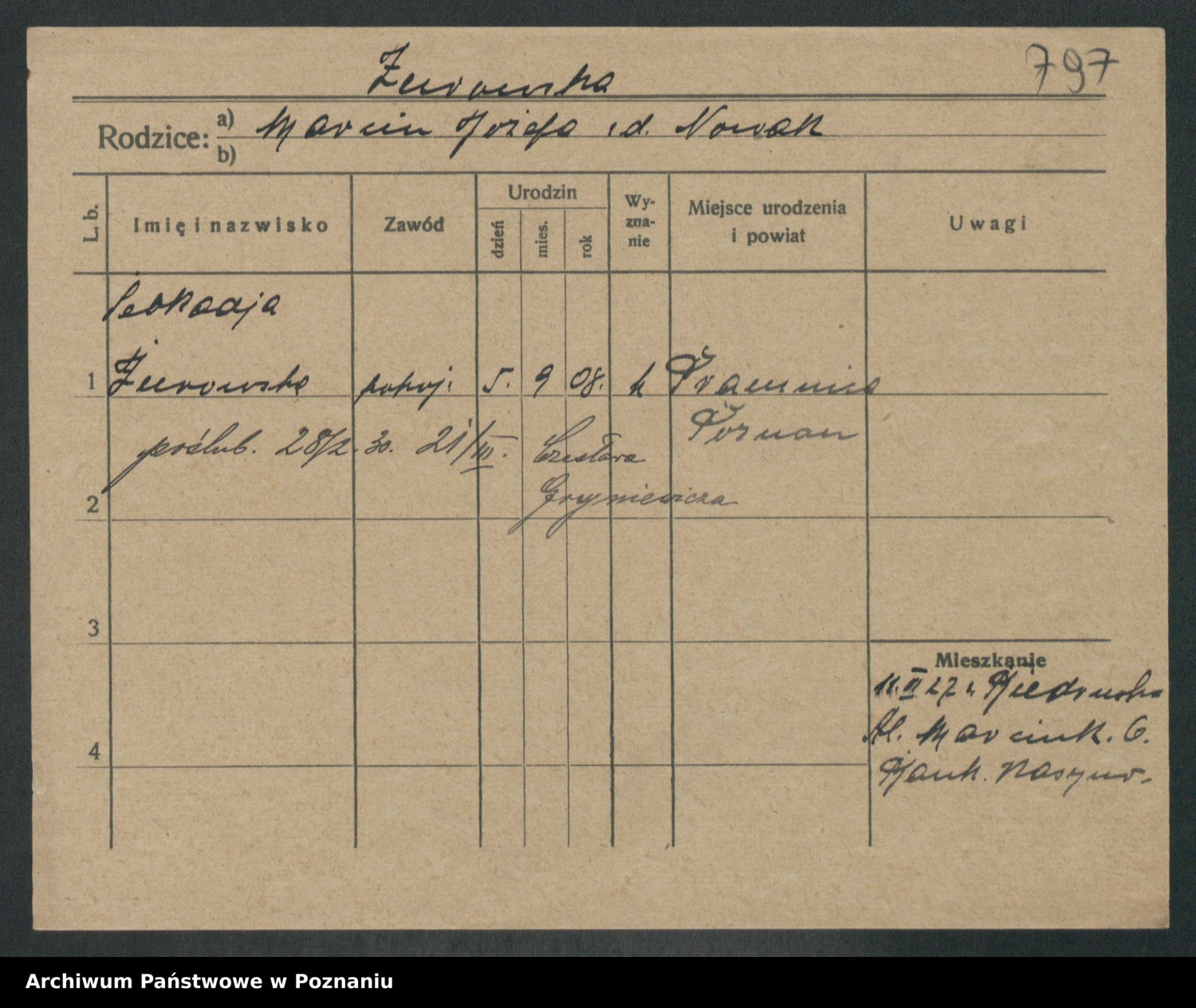 Żurawski z.d. Lewandowska, Zofja