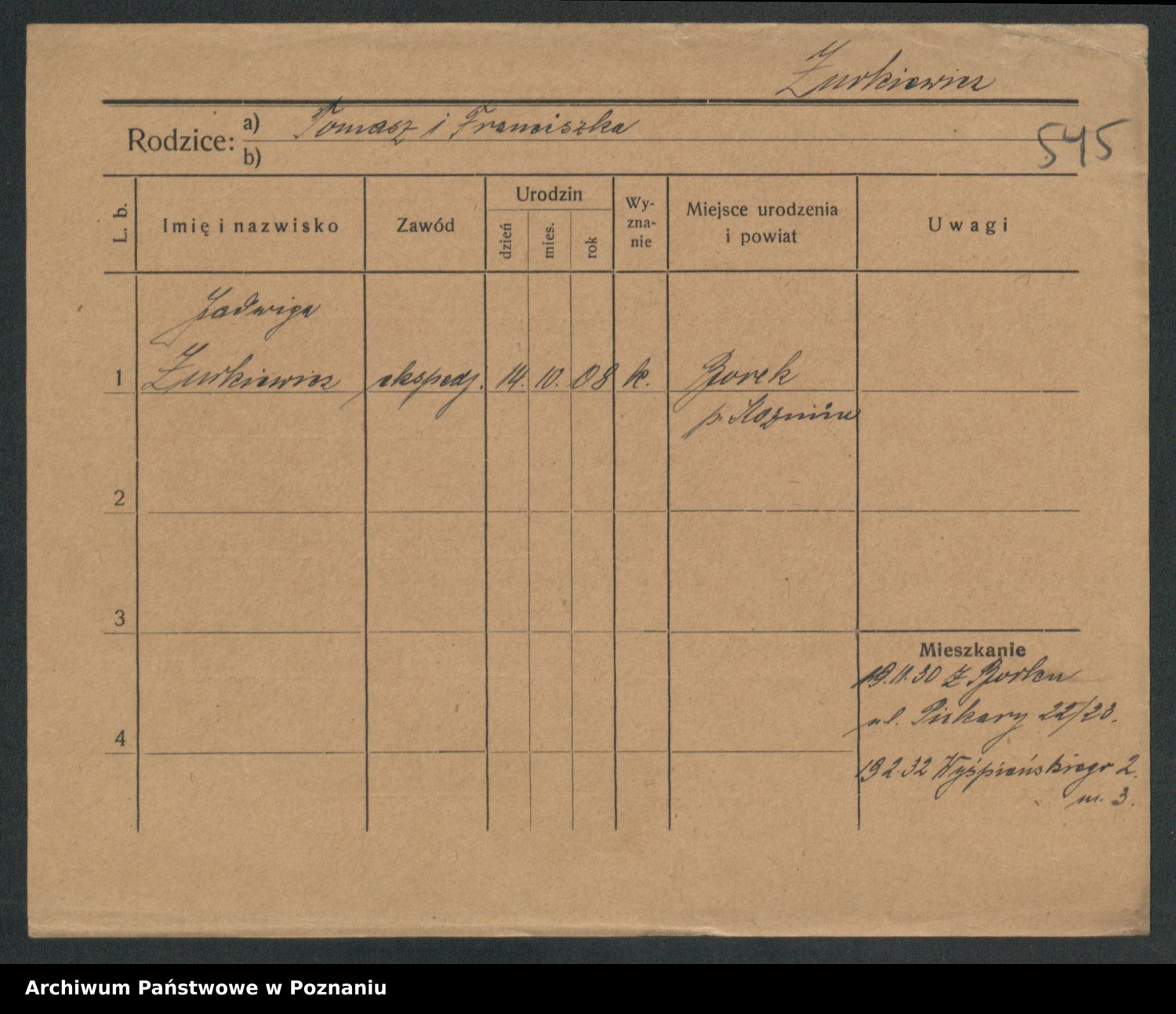 Zwierski z.d. Tomczak, Jadwiga